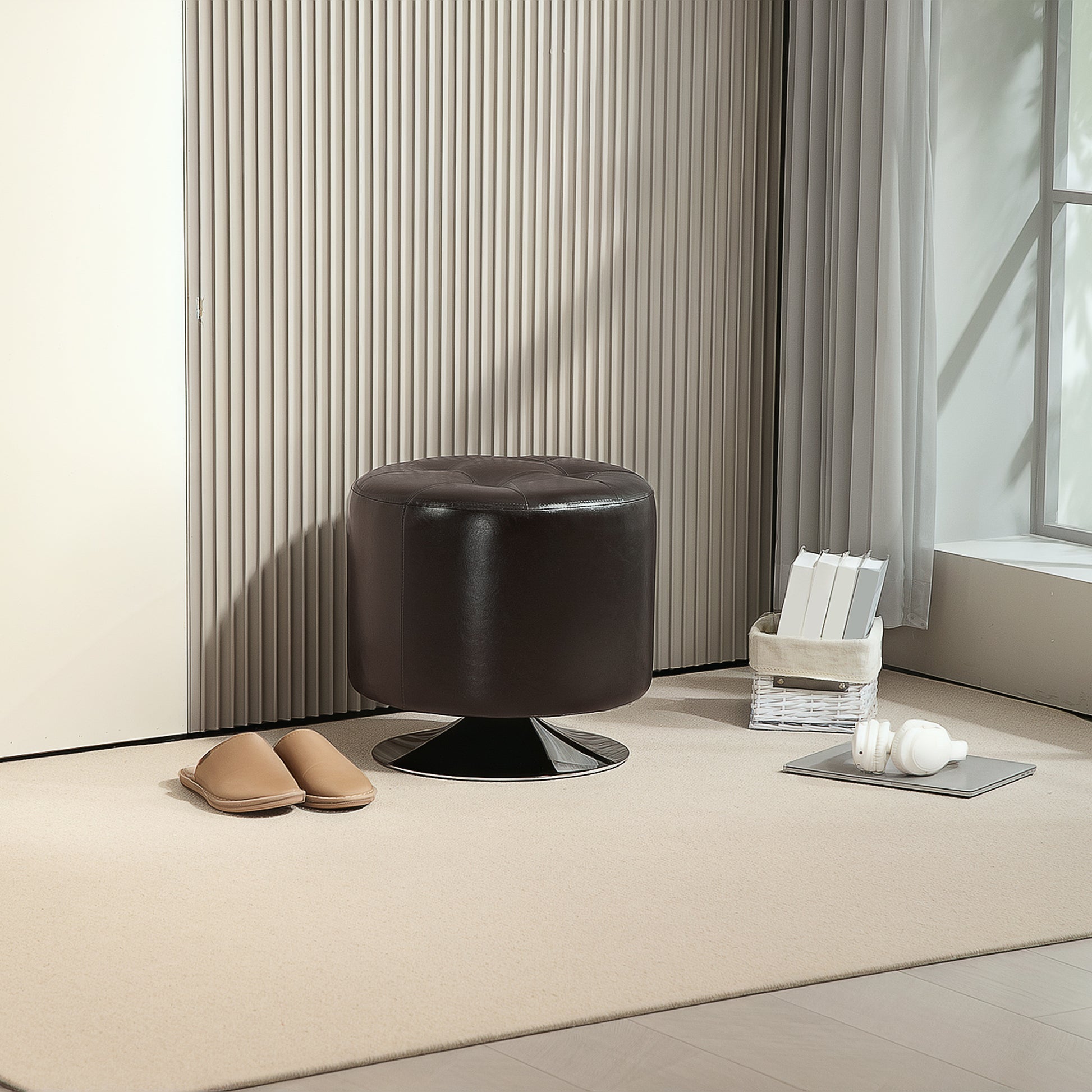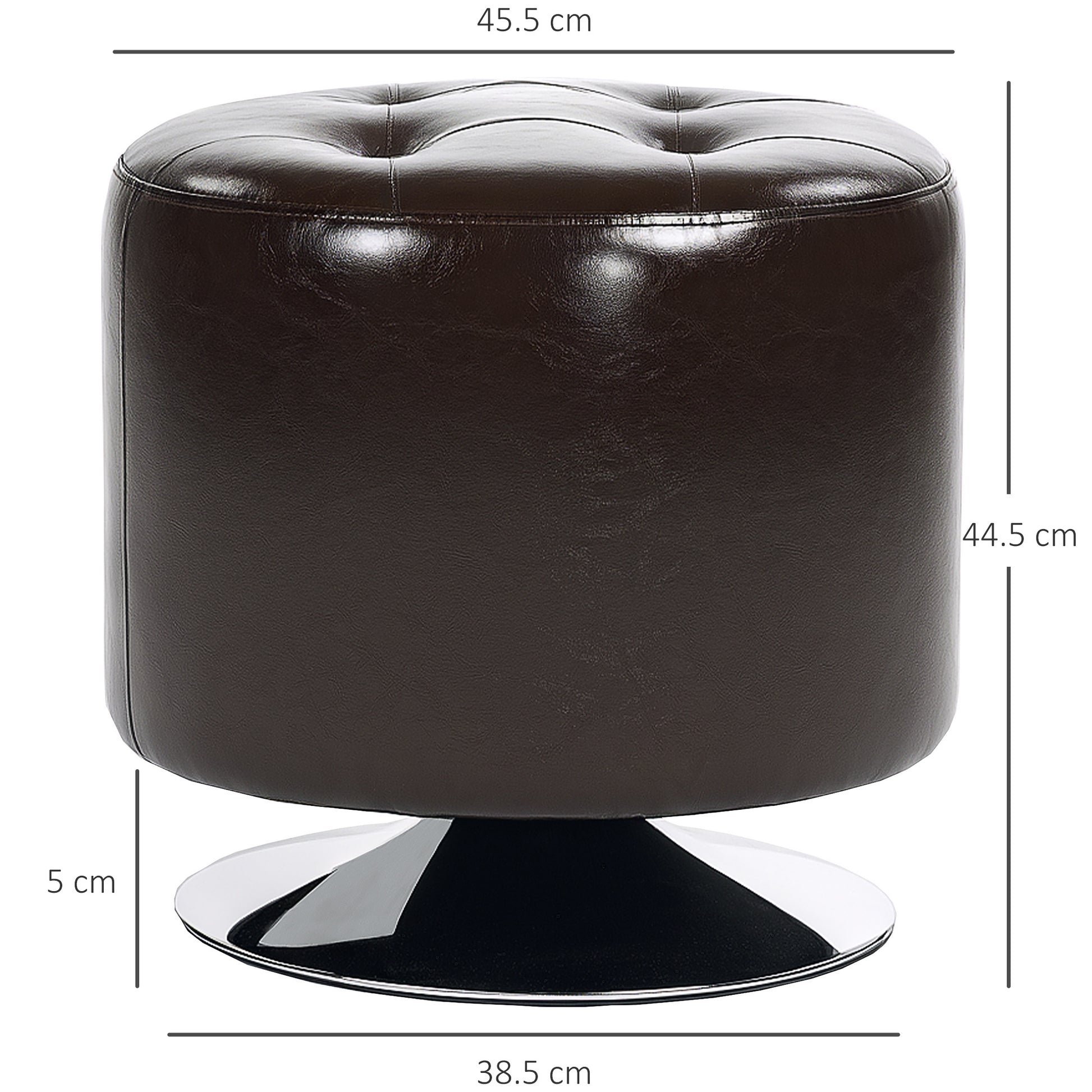 HOMCOM 360° Swivel Foot Stool Round PU Footstool with Thick Sponge Padding and Solid Steel Base, Brown