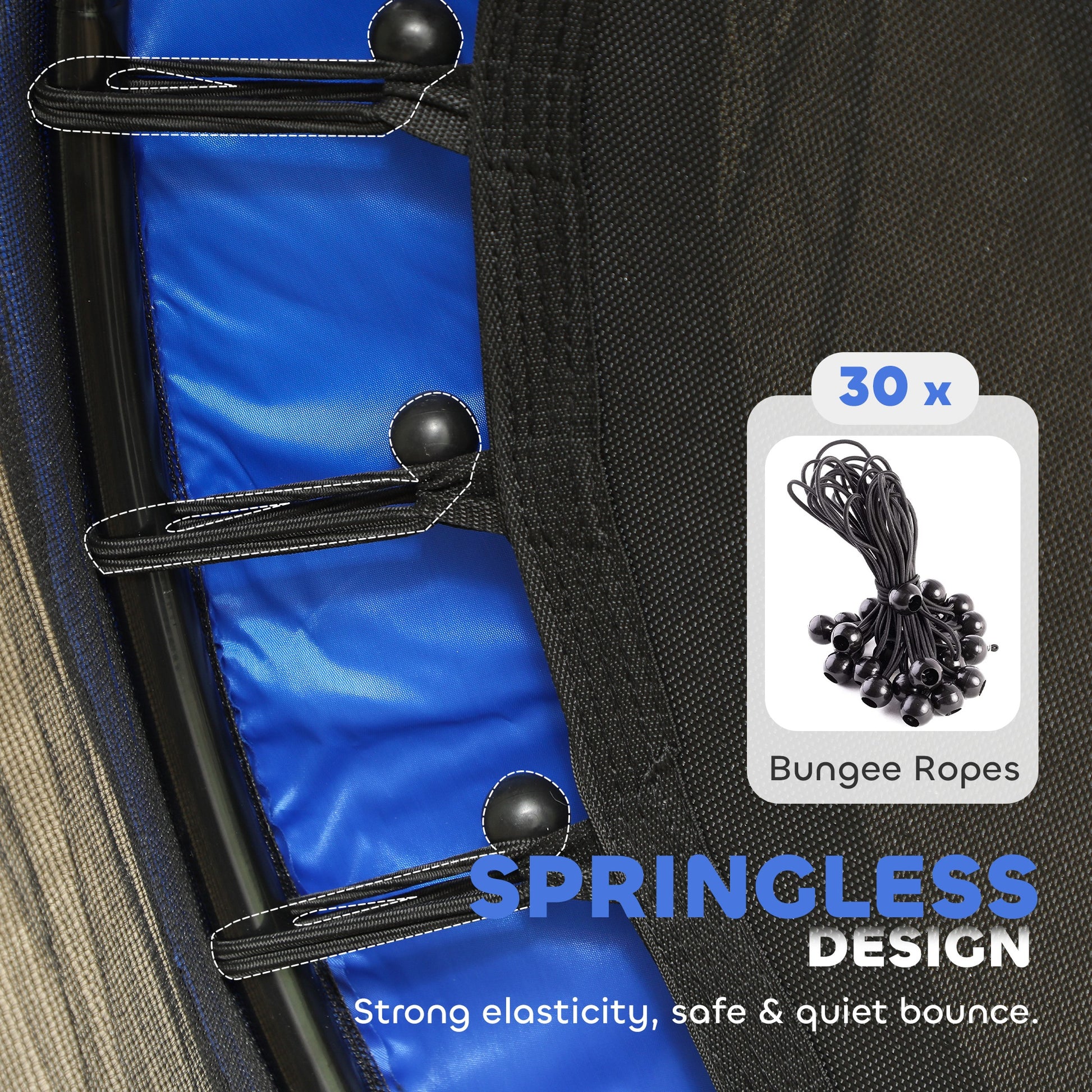The HOMCOM trampoline offers a delightful way to keep energetic kids entertained. Featuring a spacious, safe jumping area encircled by a net and cushioned poles, this trampoline ensures hours of fun and laughter. Its spring-free bungee design enhances safety, while its portability allows for both indoor and outdoor use, ensuring kids can jump anytime, anywhere.