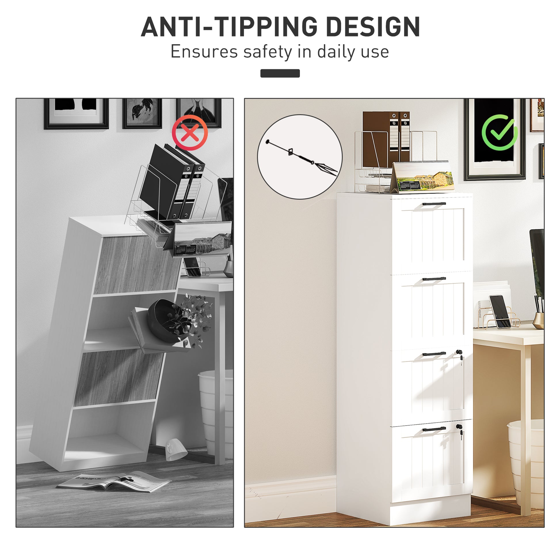 HOMCOM 4 Drawer Filing Cabinet with Lock, Office Storage Cabinet with Adjustable Hanging Bars for A4 Letter Size Files, White