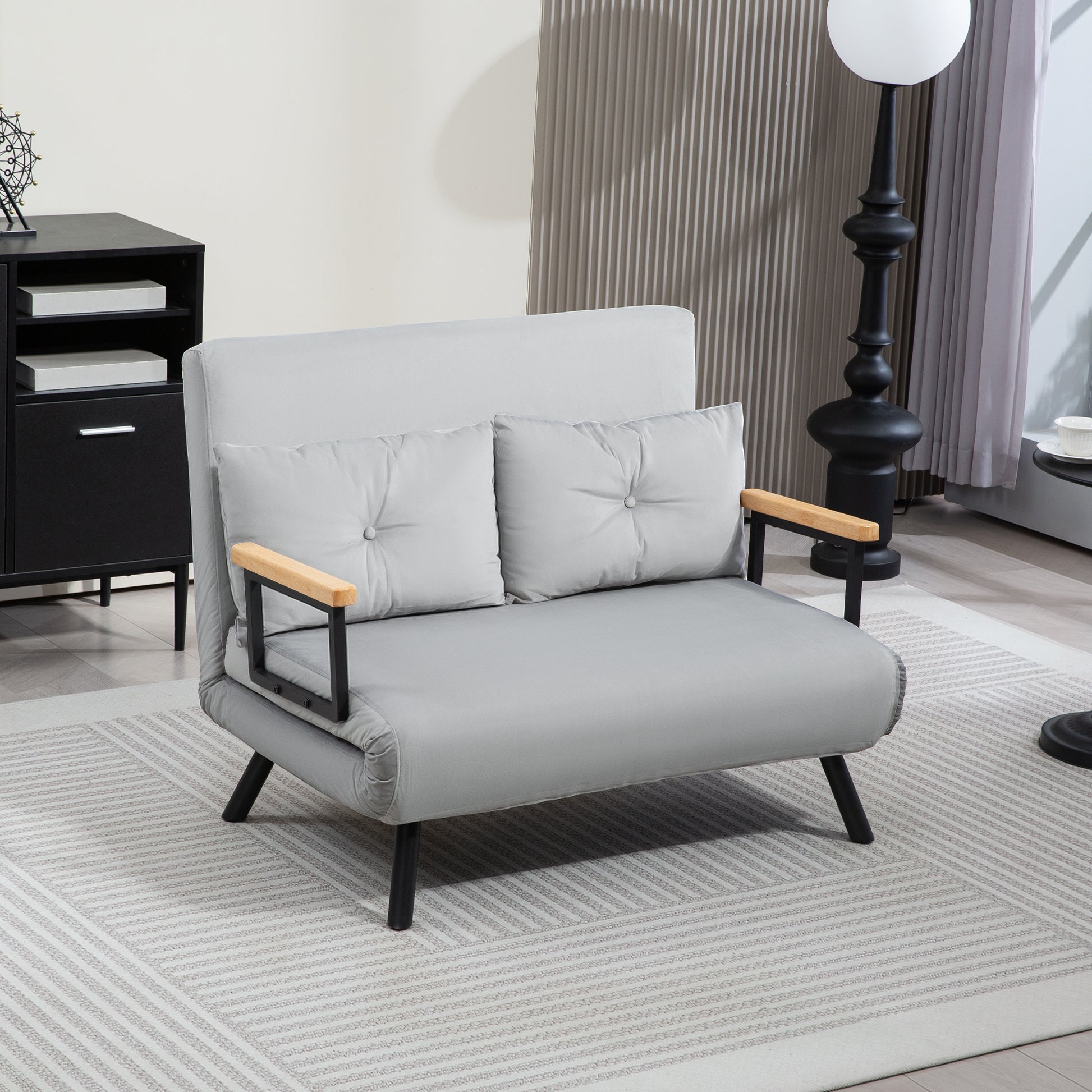 HOMCOM 4-in-1 Velvet-Feel Double Sofa Bed, with Pillows - Light Grey