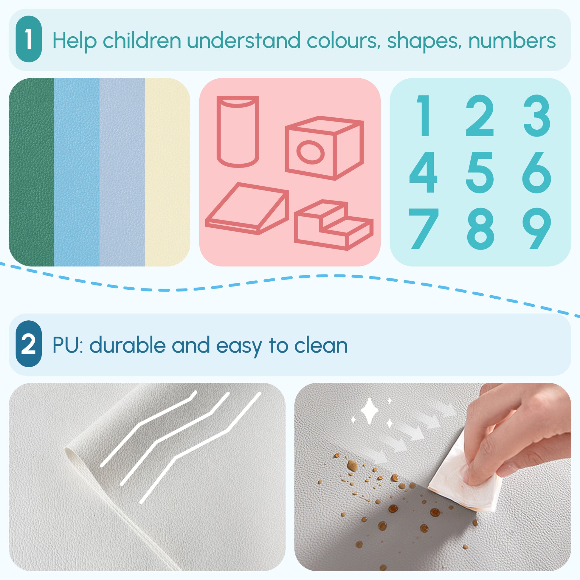 Amazing for curious kids, this HOMCOM soft playset offers a safe space for climbing, crawling and sliding, aiding motor and physical development. The soft PU cover is easy to clean, whilst the padded EPE foam ensures a soft play area for little ones at home, nurseries or schools. You can reshape the four pieces to create different obstacles, allowing kids to explore and develop.