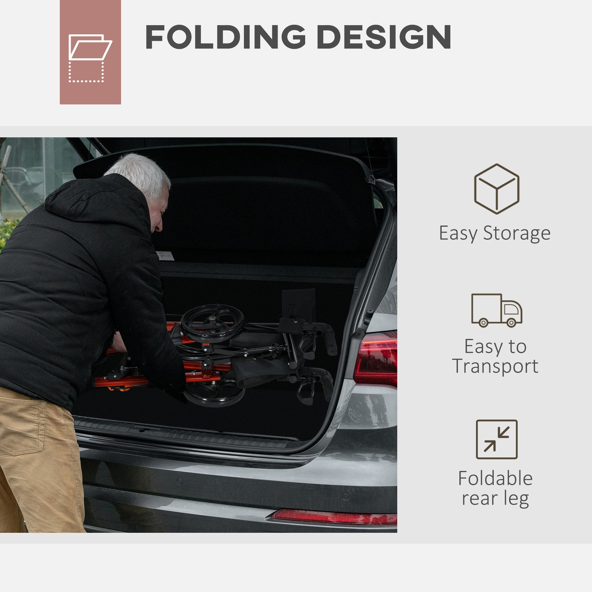 HOMCOM 4 Wheel Rollator with Seat and Back, Folding Mobility Walker with Carry Bag, Adjustable Height, Dual Brakes, Cane Holder, Lightweight Aluminium Walking Frame for Seniors and Disabled, Red