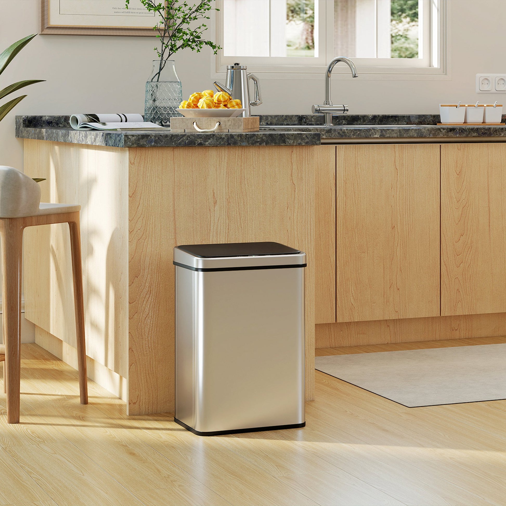 HOMCOM 40L Sensor Bin with Quiet Soft-Close Lid, Automatic Touchless Motion Sensor Kitchen Bin with Fingerprint Resistant Stainless Steel for Hygienic Gyms, Home Office Use, Silver Tone