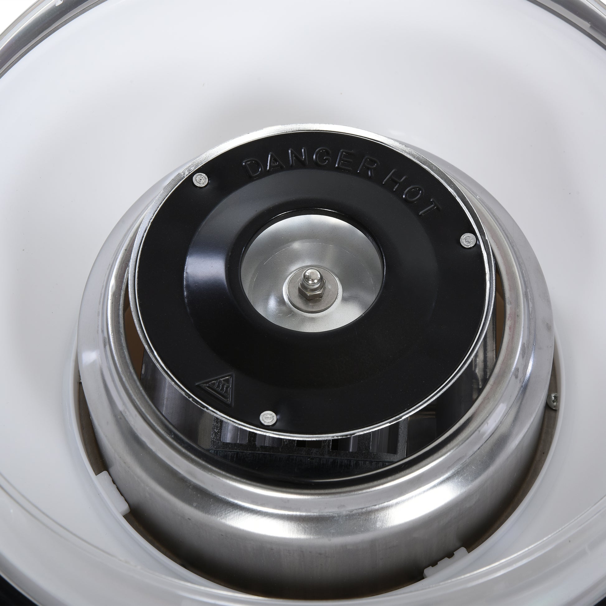 - Equipped with two quartz tubes for quick and even heating, makes candyfloss in two minutes