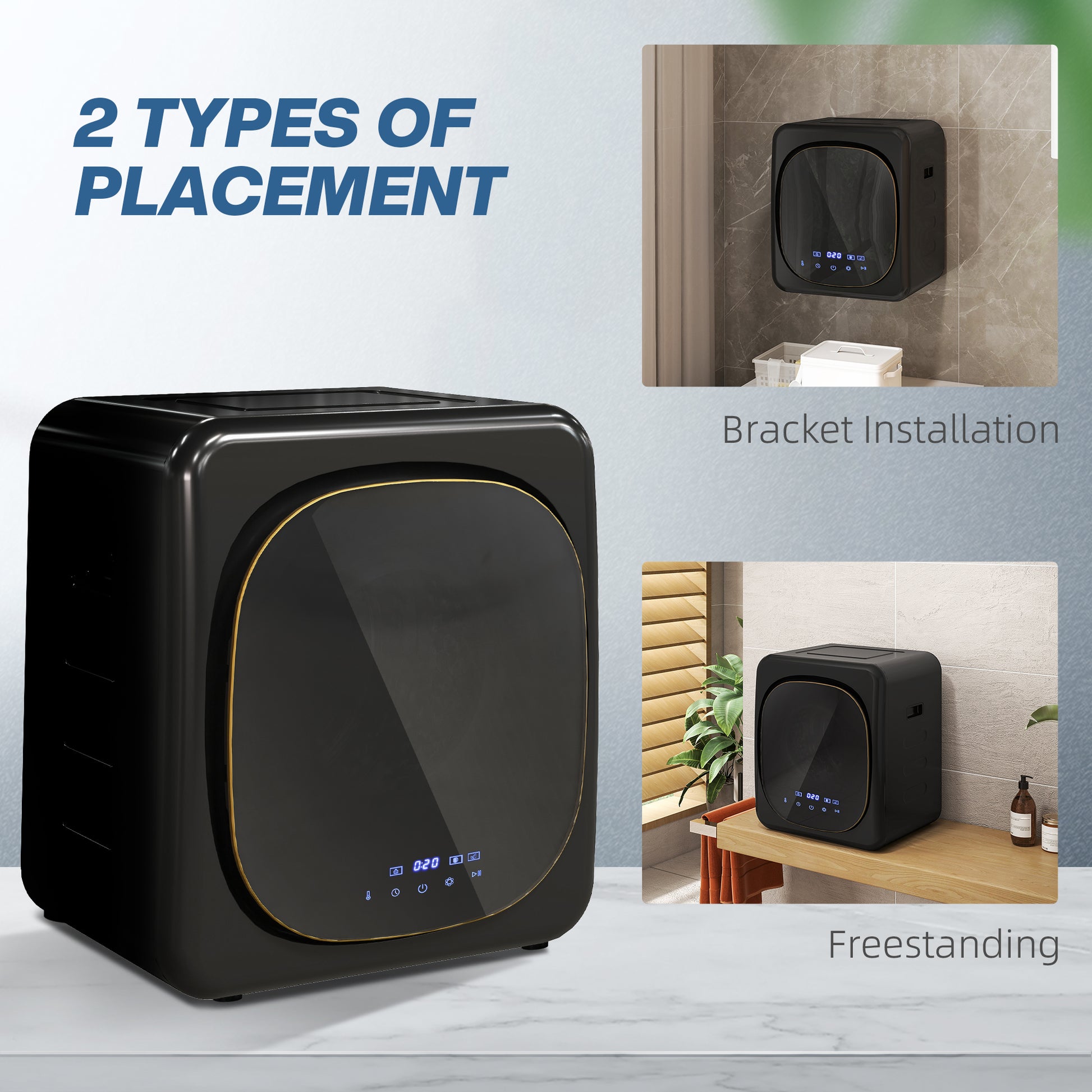HOMCOM 4kg Vented Tumble Dryer with Deodorize, Smart Mode, 800W Compact Tumble Dryer with Stainless Steel Tub, Front Load, for Flat, Home, RVs, Black