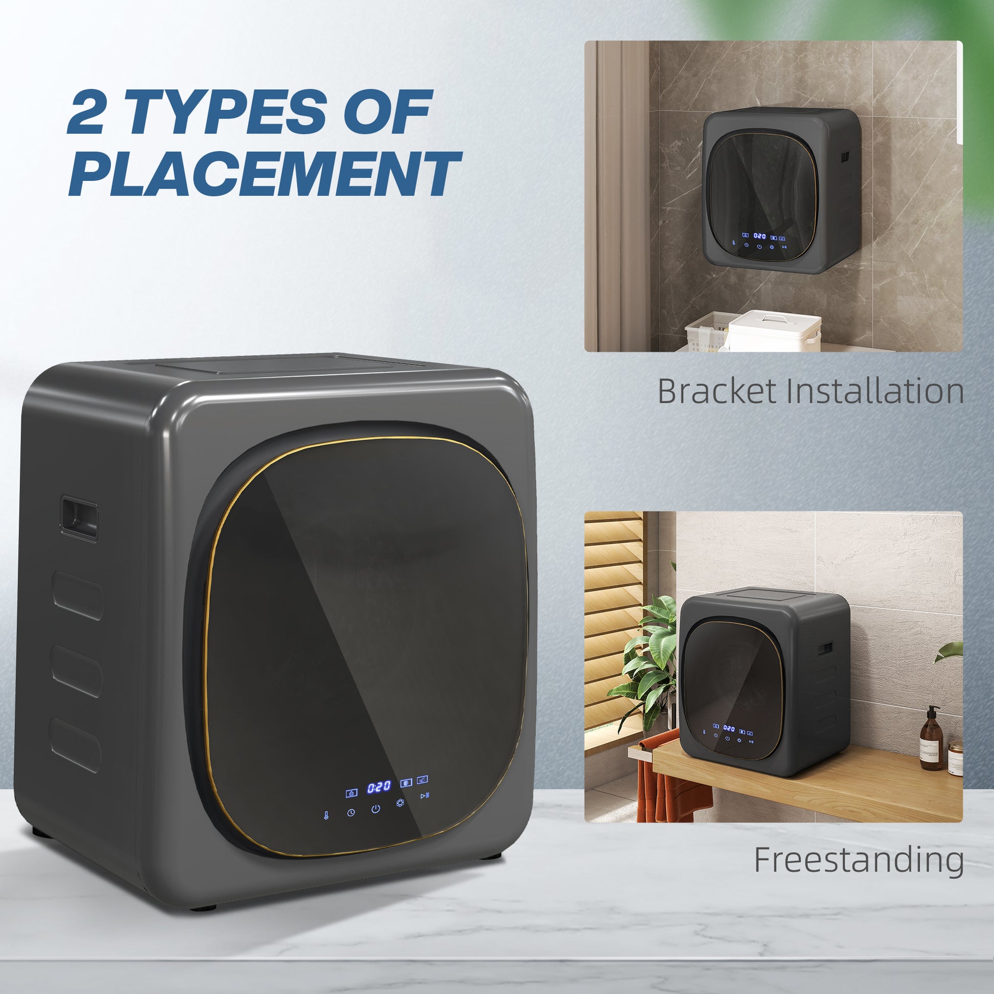 HOMCOM 4kg Vented Tumble Dryer with Deodorize, Smart Mode, 800W Compact Tumble Dryer with Stainless Steel Tub, Front Load, for Flat, Home, RVs, Grey