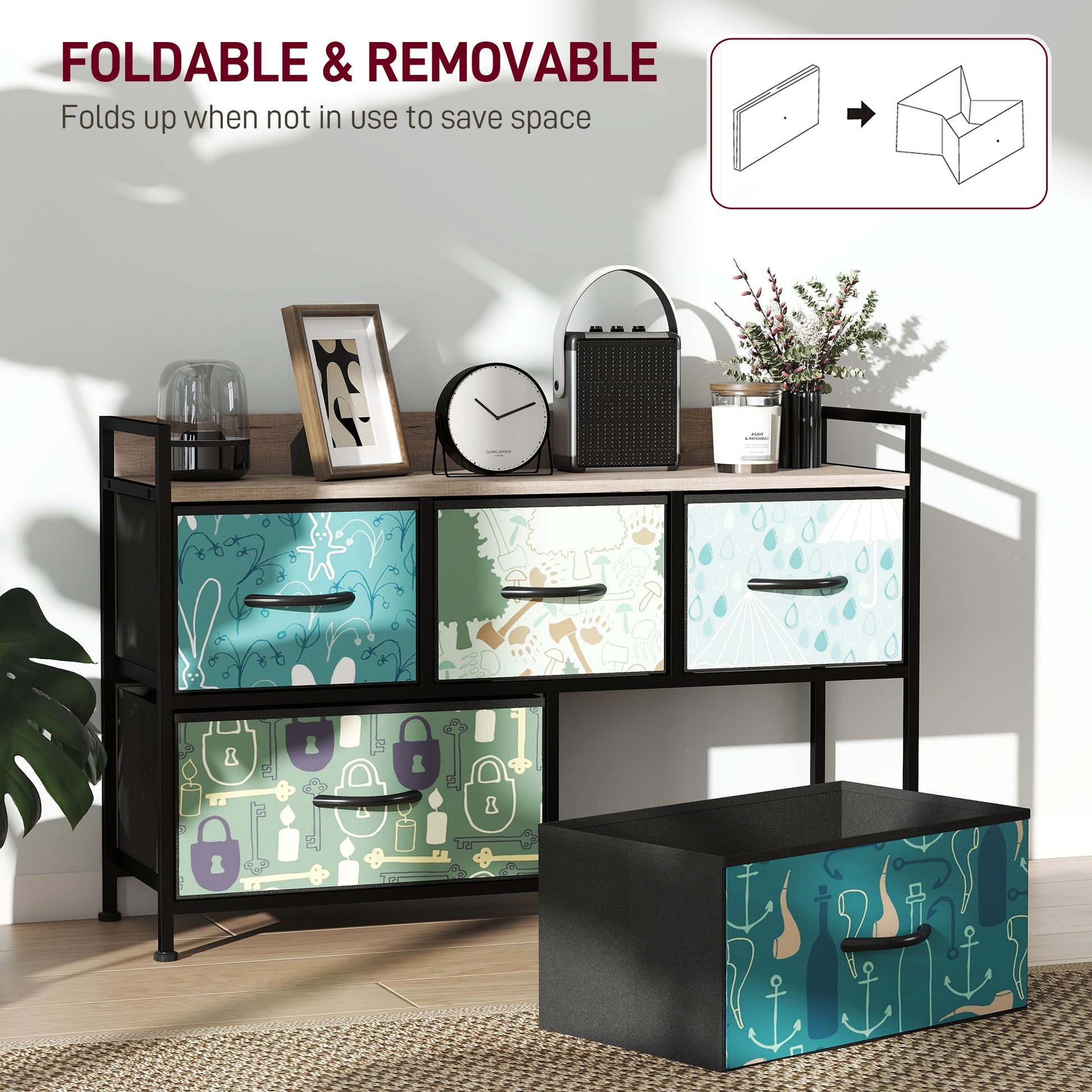 Transform your space with the HOMCOM chest of drawers, where style meets functionality! Adorned with exquisite patterns on each drawer panel, this bedroom drawers add a touch of elegance to any room. With five fabric drawers that are both removable and foldable, organising has never been easier. Great for bedrooms, living rooms, or home offices to keep your essentials tidy.