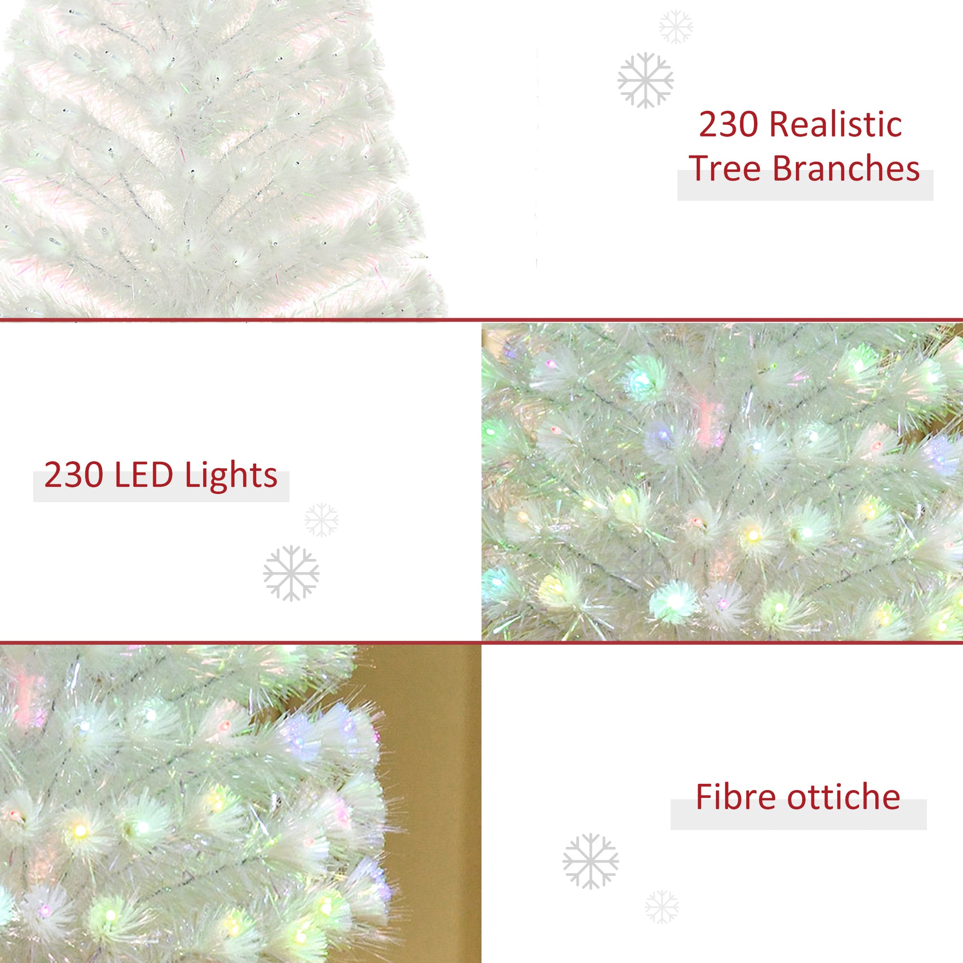 HOMCOM 5 Feet Prelit Artificial Christmas Tree with Fiber Optic LED Light, Holiday Home Xmas Decoration, White