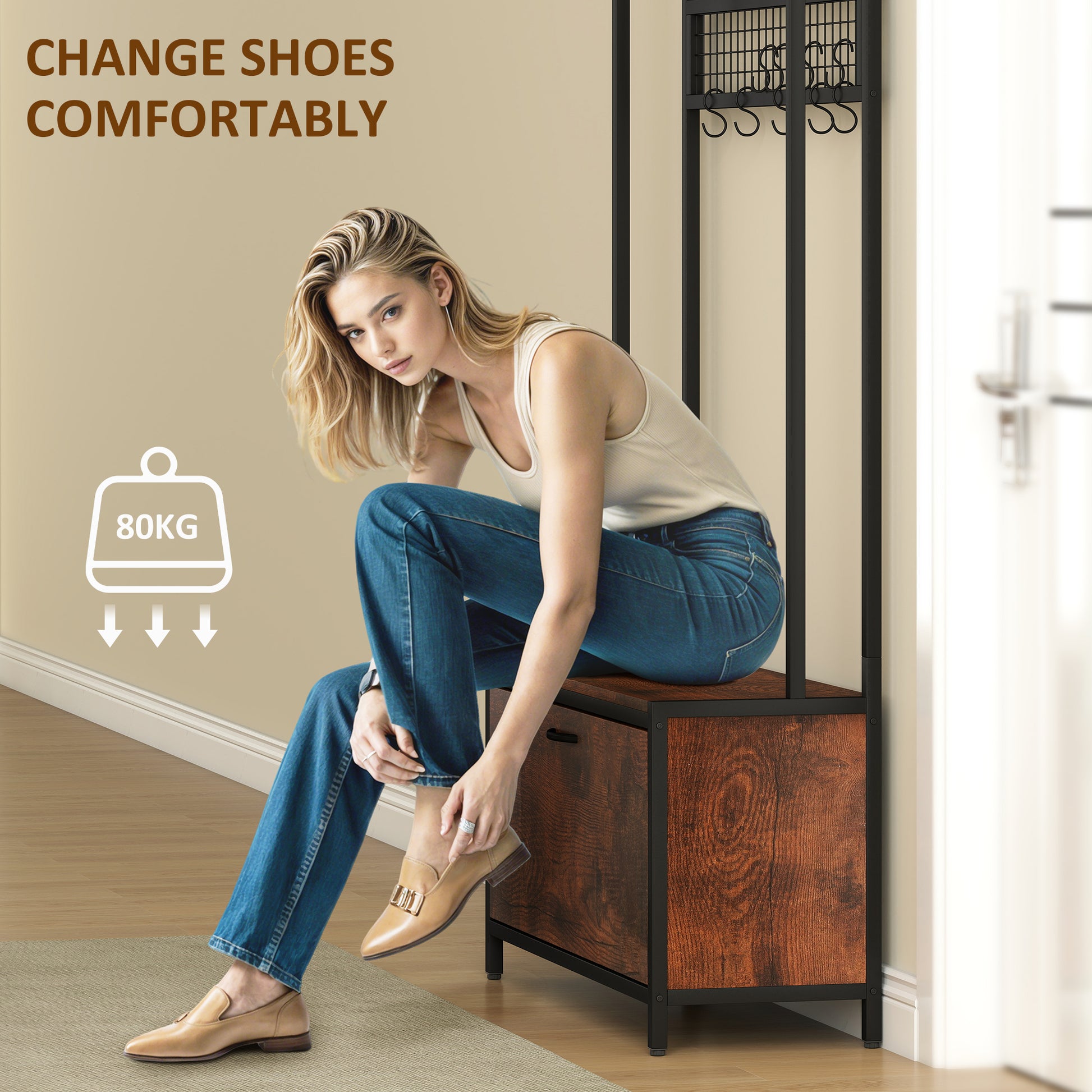 HOMCOM 5-In-1 Industrial-Style Hallway Tree - Brown/Black