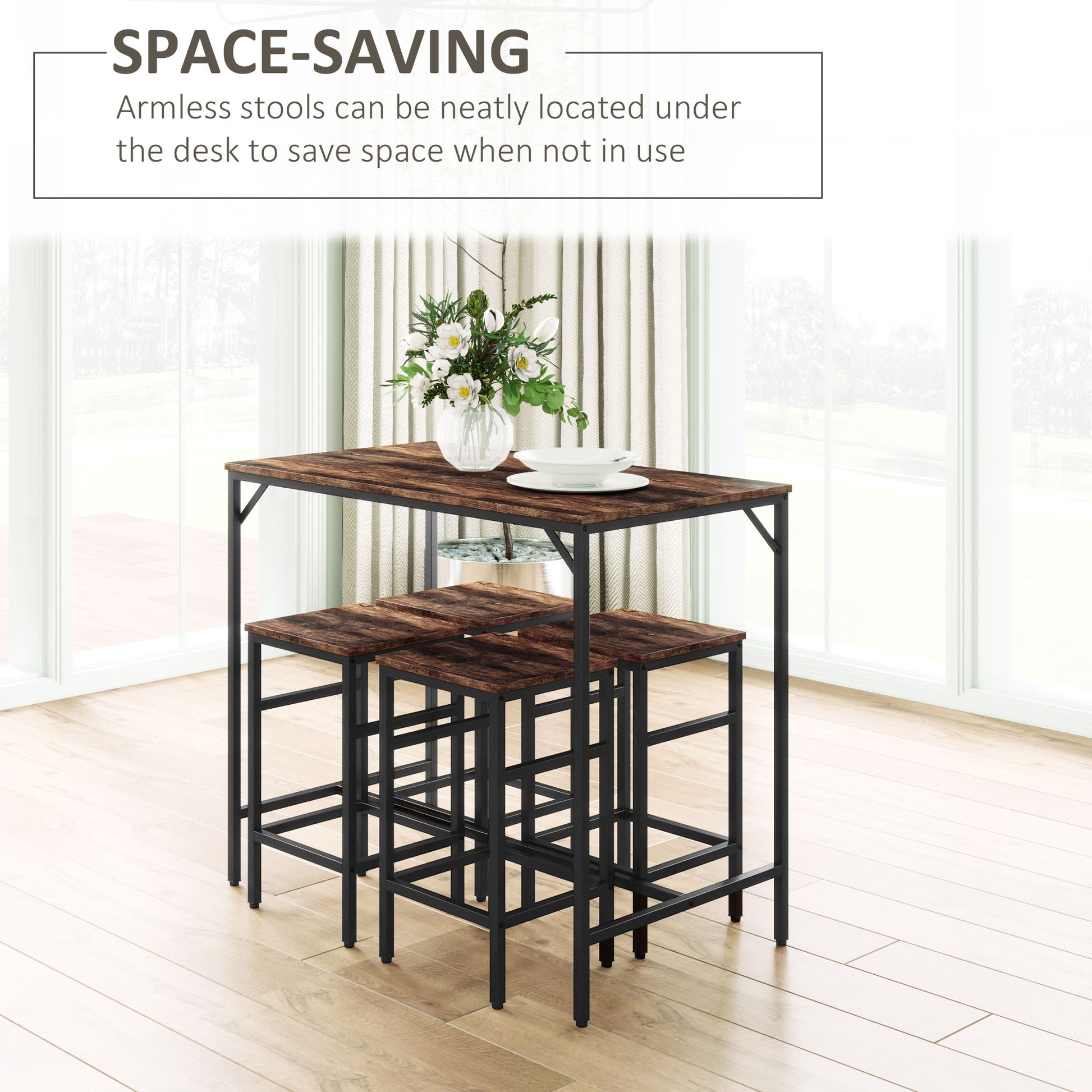 HOMCOM 5-Piece Breakfast Bar Table and Stools Set, Kitchen Bar Table Set with High Table and 4 Stools, Space Saving Compact Dining Furniture for Small Spaces, Rustic Brown