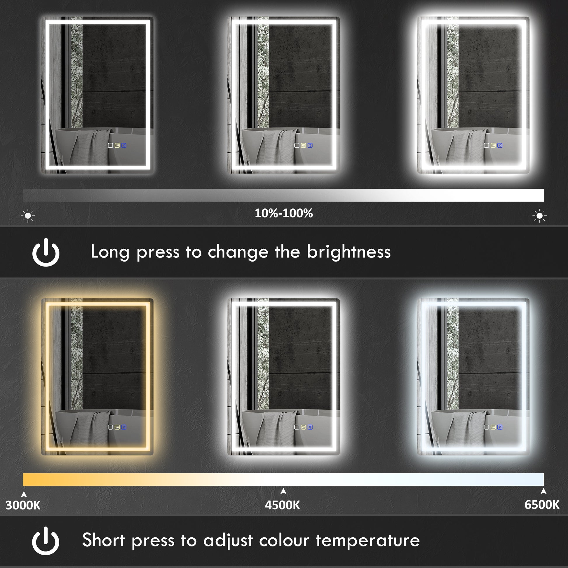 - Colour Temperature: 3000K warm white/4500K natural /6500K cool white