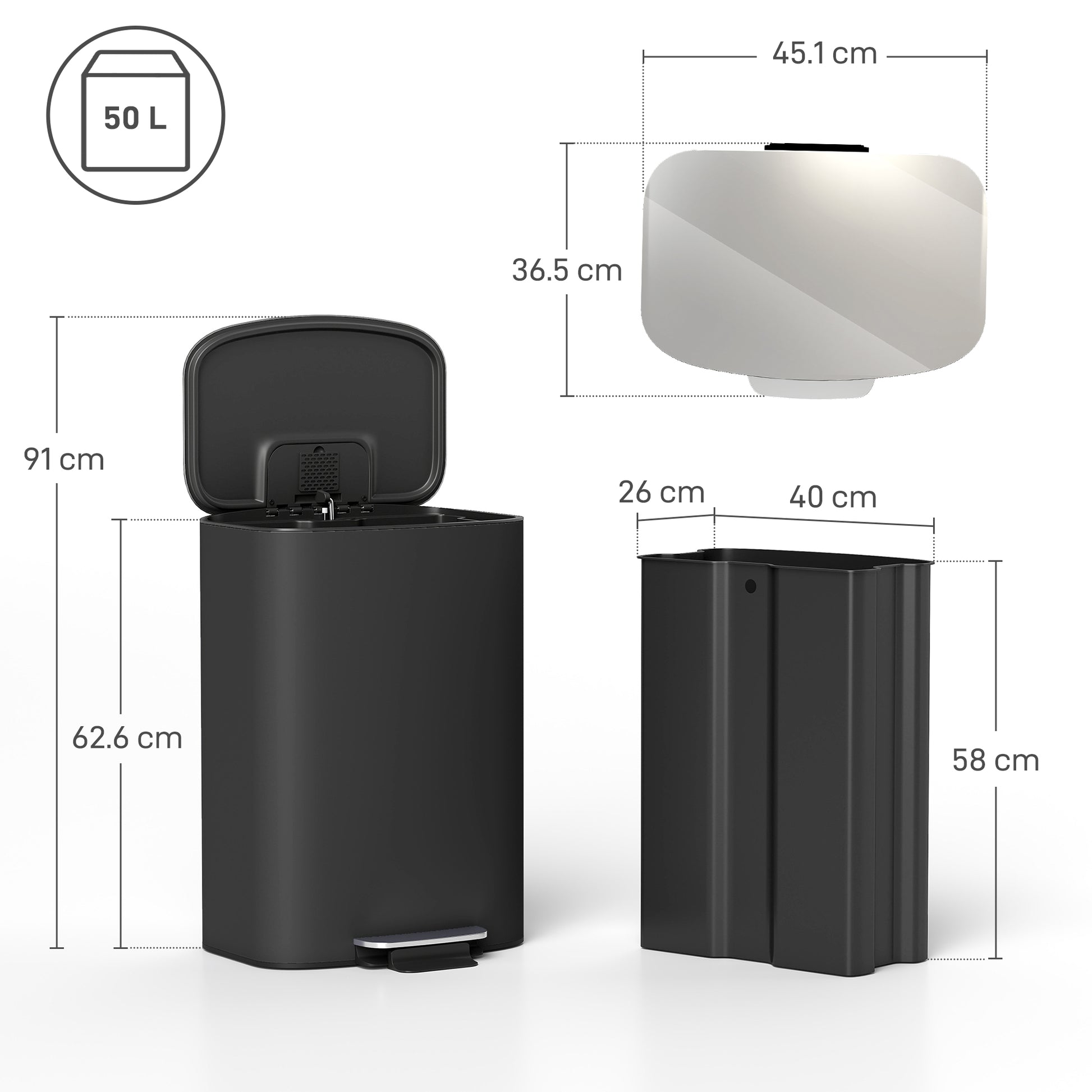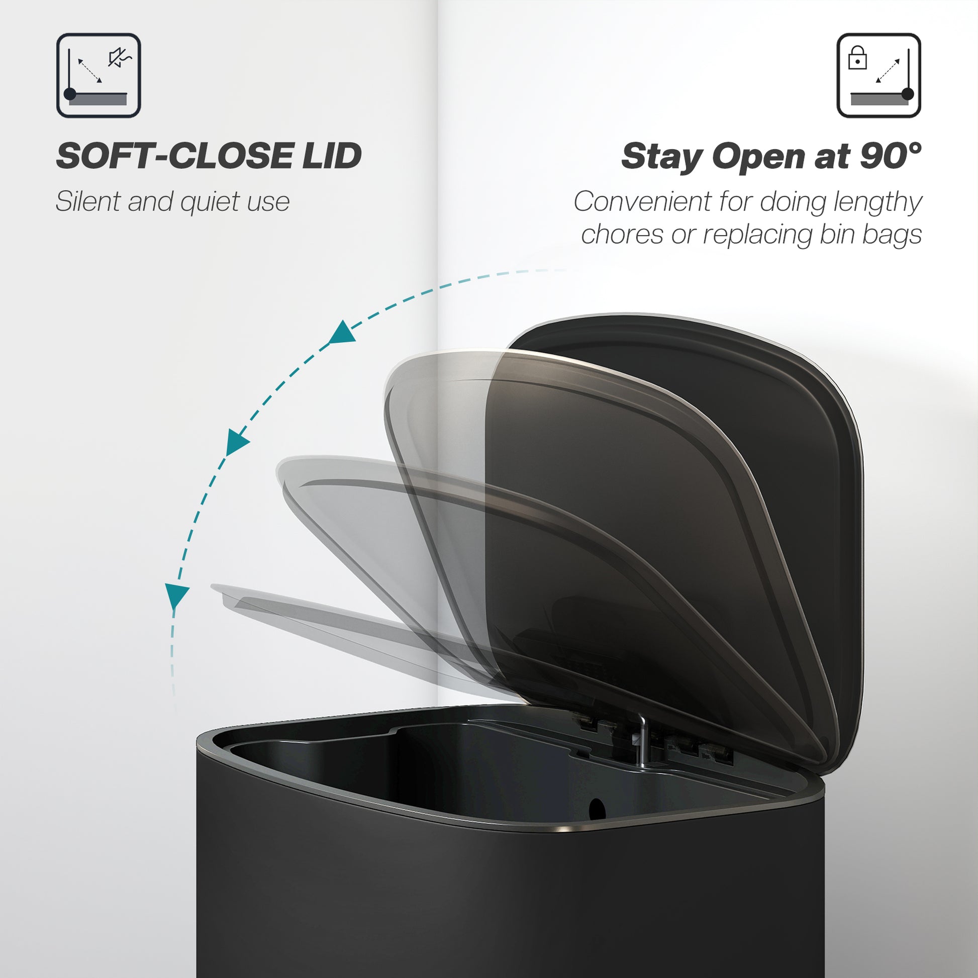 HOMCOM 50L Kitchen Bin with Soft-Close Lid and Stay-Open Function, Stainless Steel Pedal Bin with Removable Inner Bucket, Carry Handle for Kitchen, Office, Home, Black