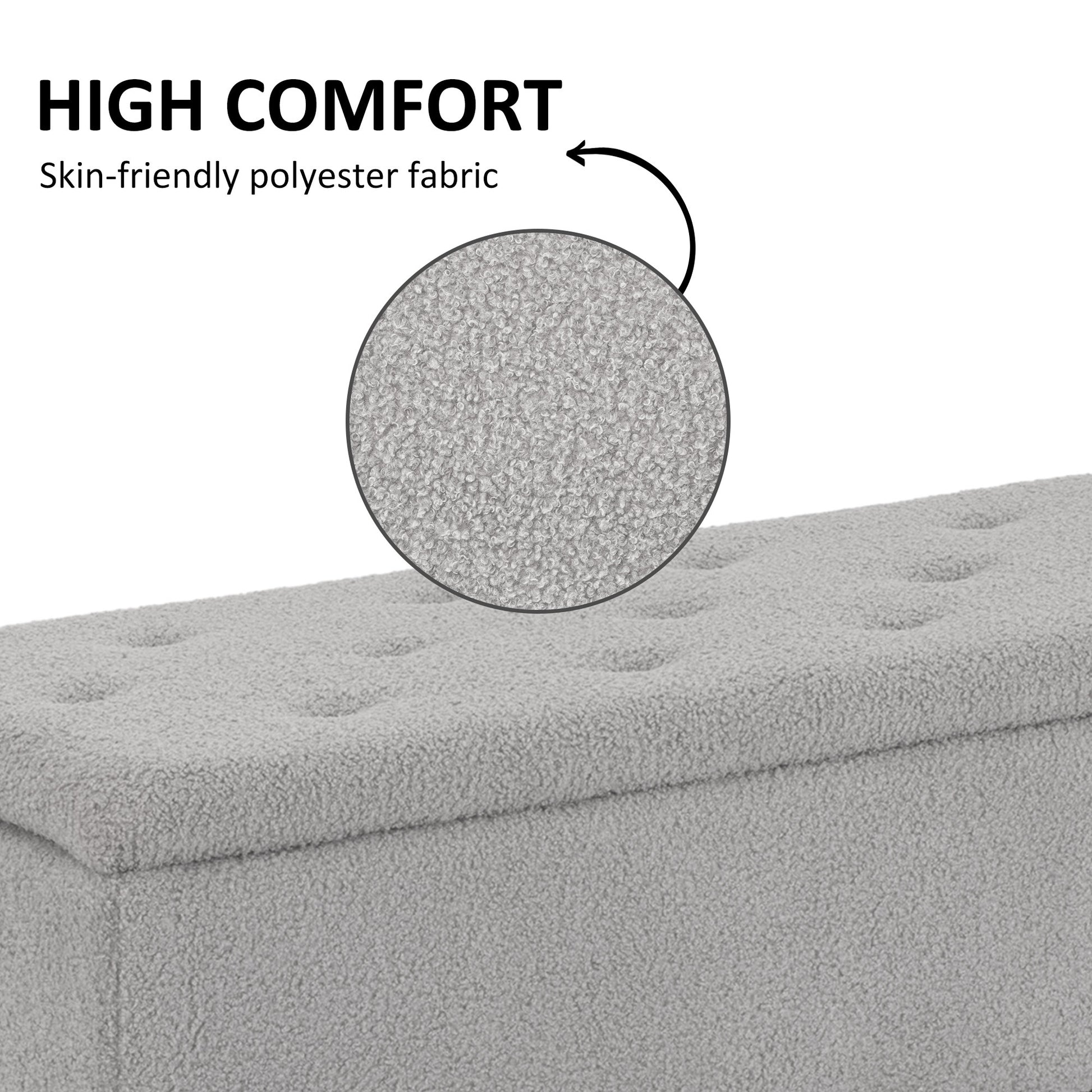 HOMCOM 57L Storage Ottoman, End of Bed Bench with Wooden Legs, Fabric Footstool for Living Room, Bedroom, 95 x 38 x 45cm, Grey