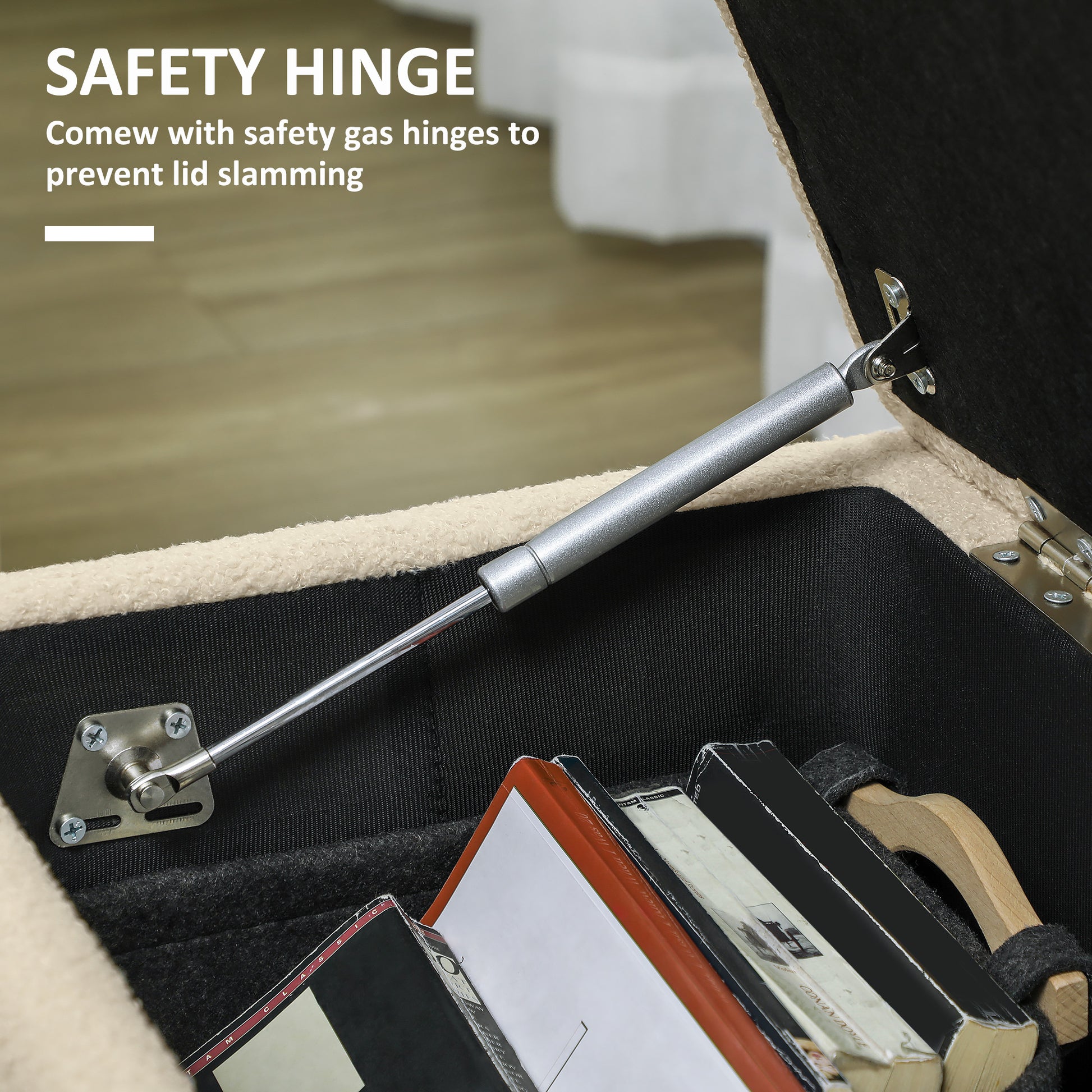 HOMCOM 57L Teddy Fleece Storage Ottoman - Cream