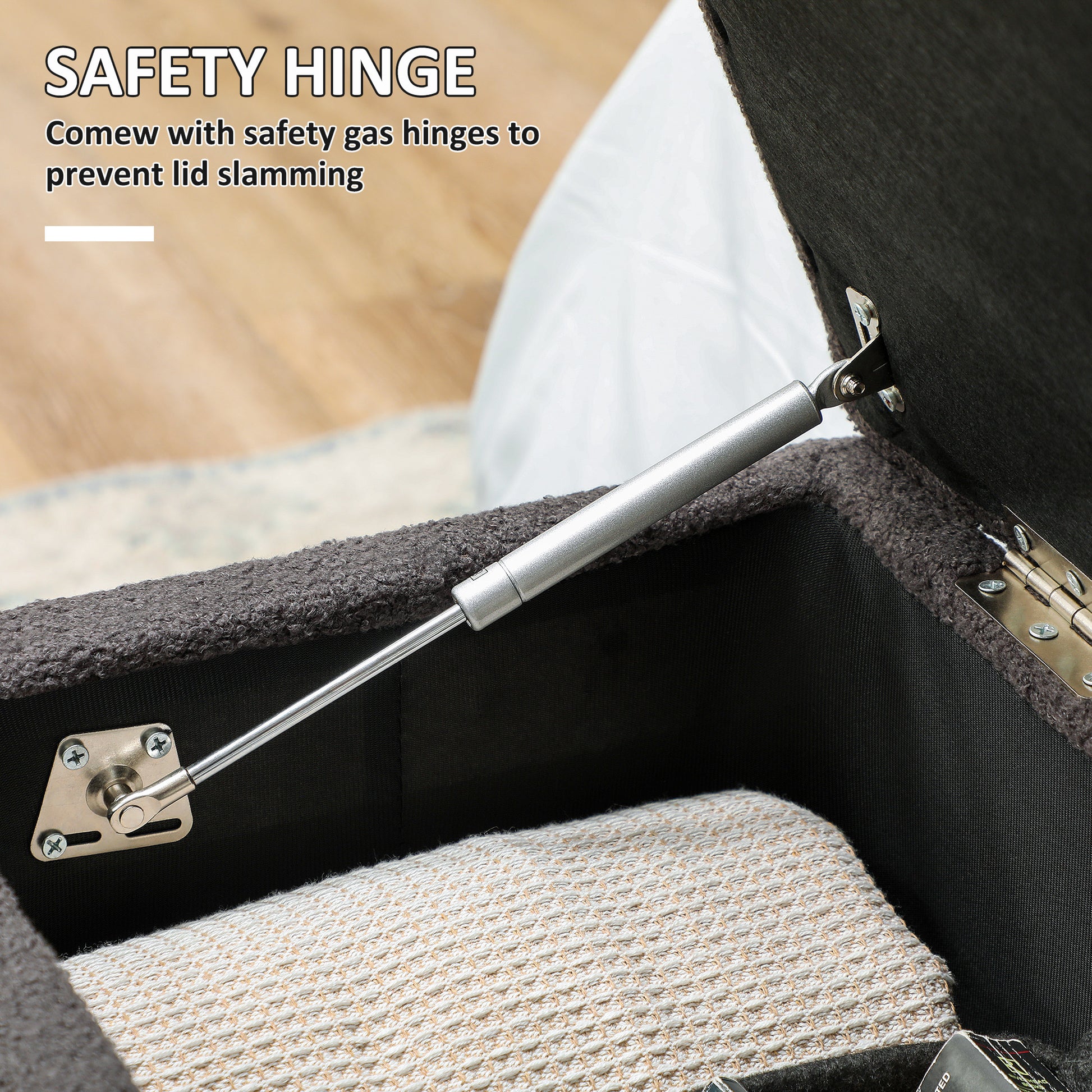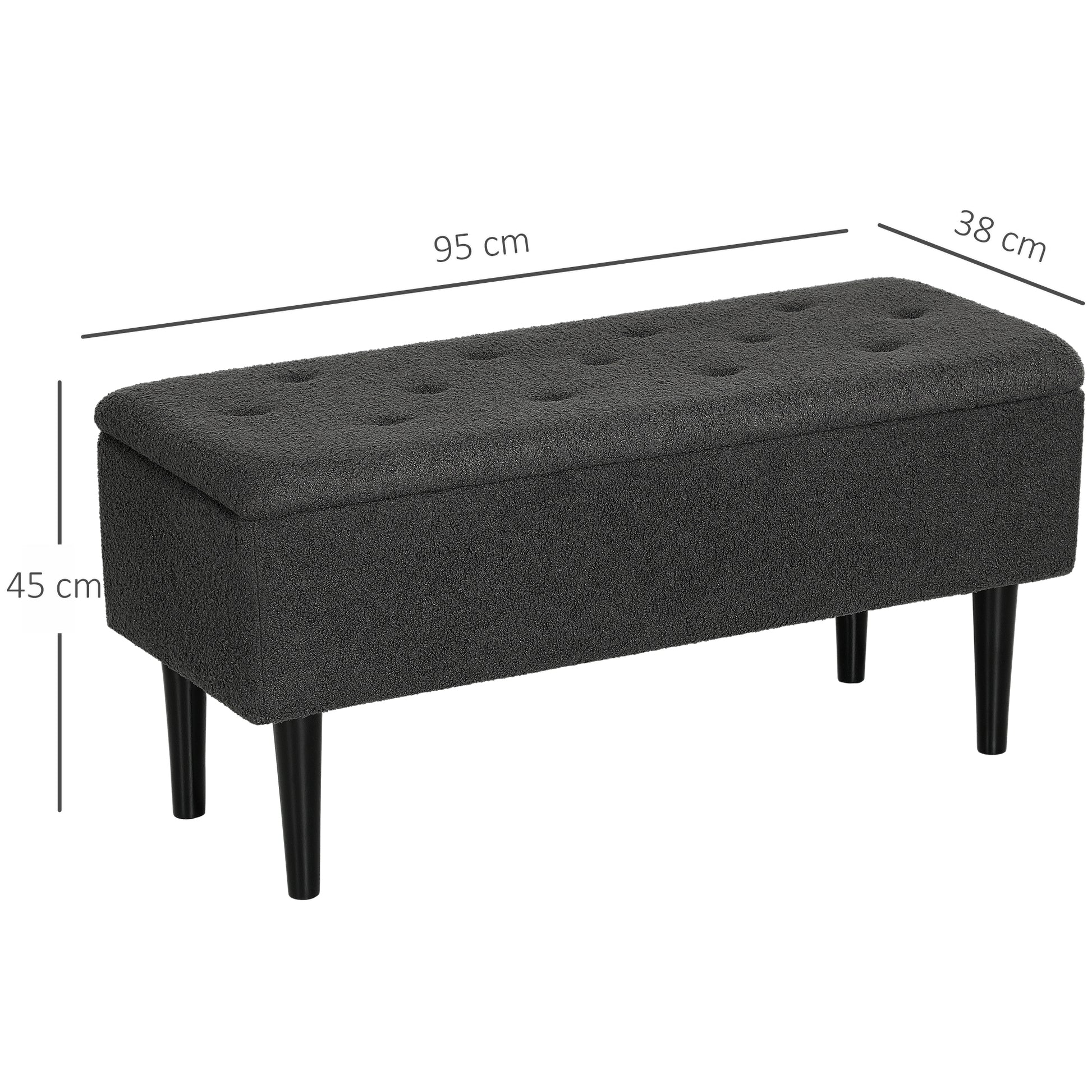 HOMCOM 57L Teddy Fleece Storage Ottoman - Dark Grey