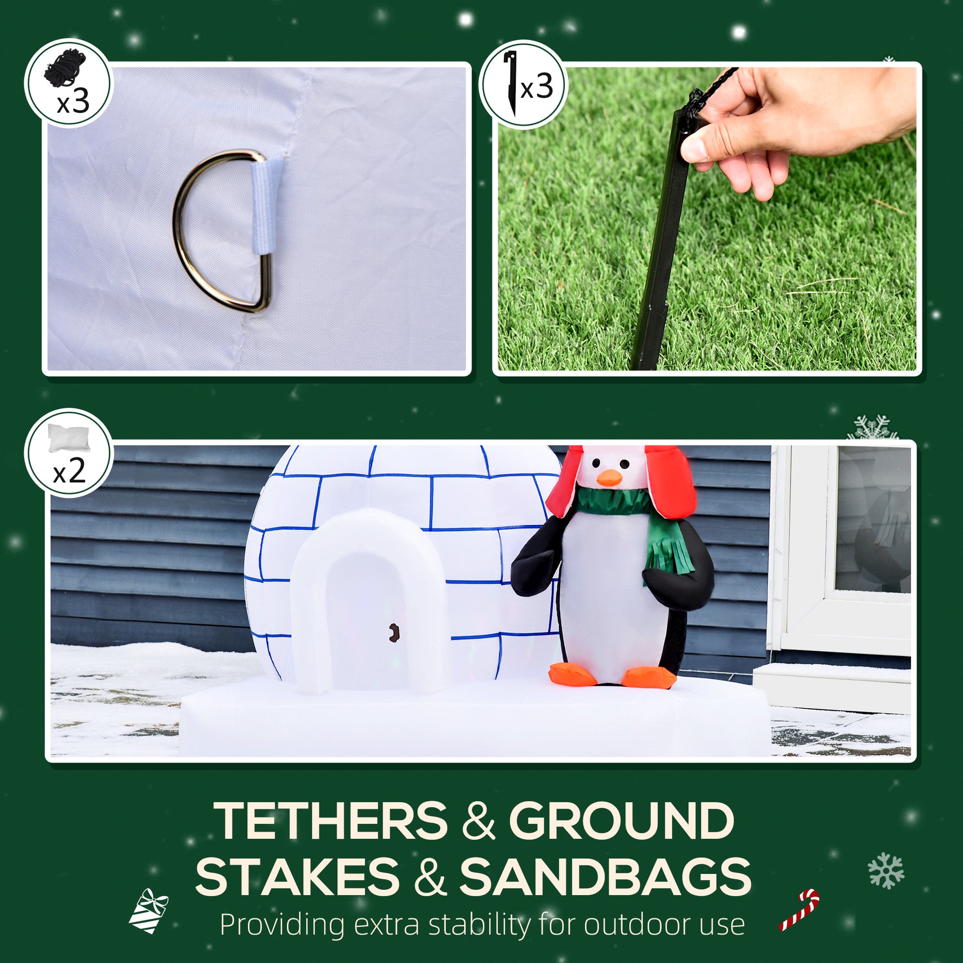 HOMCOM 5ft Christmas Inflatable Two Penguins Wearing a Scarf with Ice House Blow Up Decor Home Indoors with Built-in LED Lights Outdoor Toys in Lawn Garden