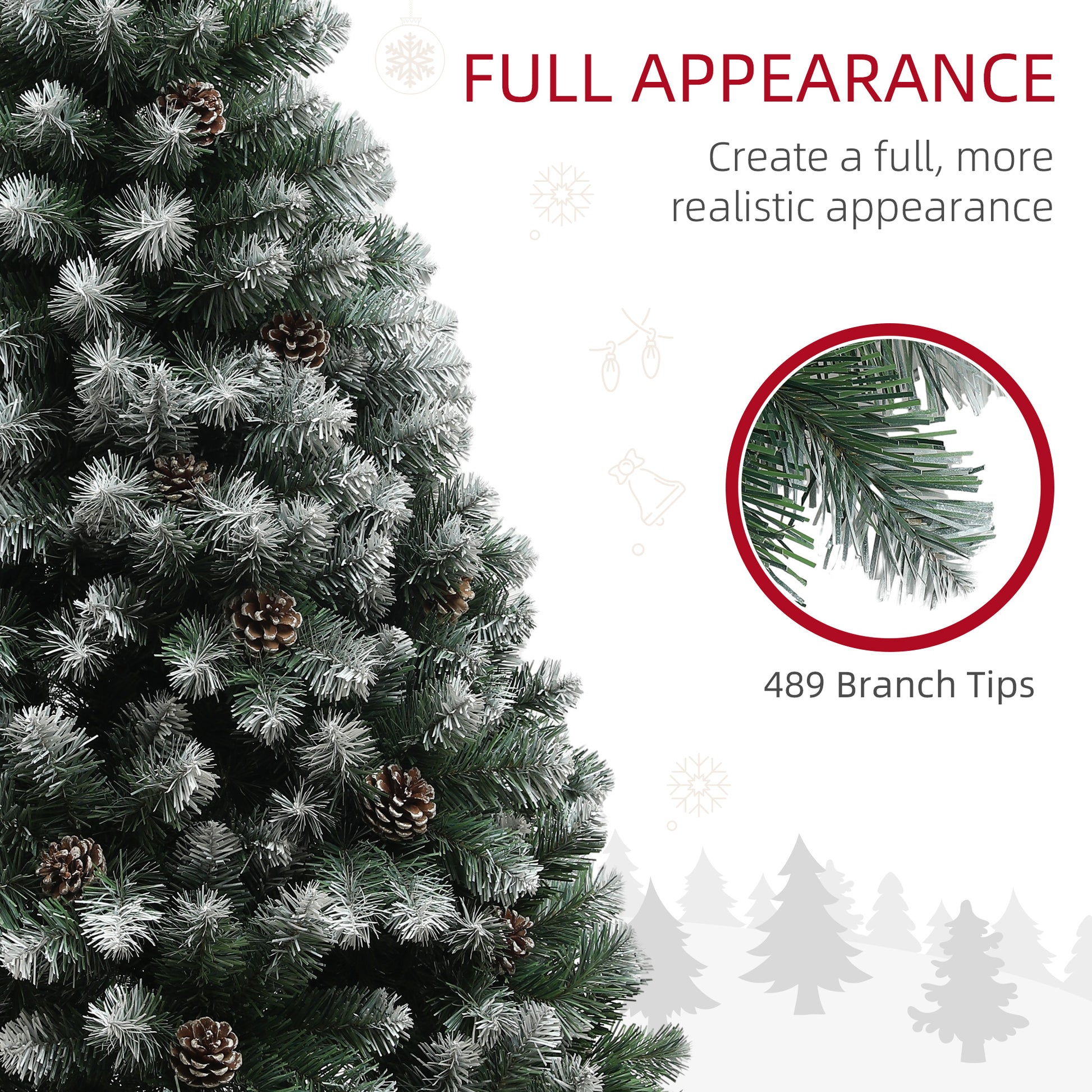 Bring the feel of nature into your christmas festivities, with this HOMCOM 5ft artificial christmas tree. It comes as a winter pine tree design, with snowy white ends and covered with pine cones—a beautiful design great for the season. The bare design allows you to dress up with whatever lights and decorations you want; personalise it how you want. Made from flame-retardant plastic, this is a safe and tough xmas tree, complete with a metal base to stand steady.