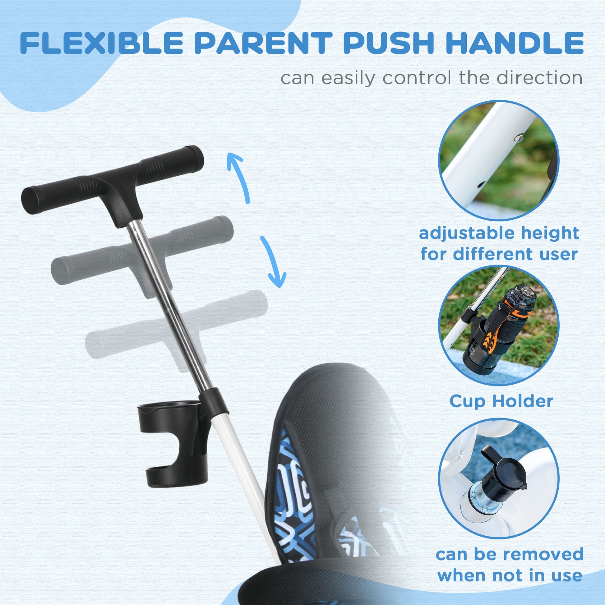 HOMCOM 6 in 1 Tricycle for Kids with 5-point harness straps, Removable Canopy, Blue