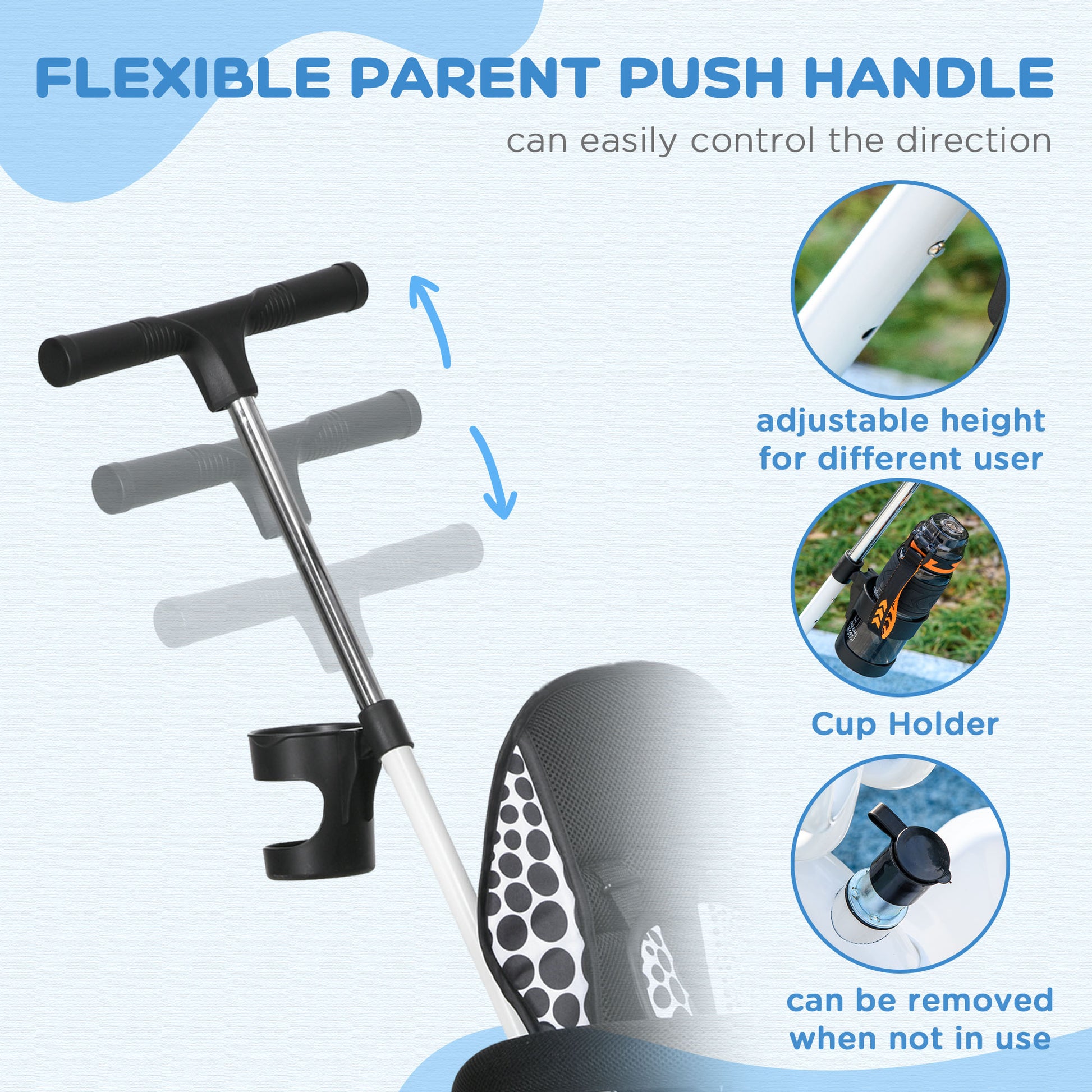 Unleash endless fun and adventure with the Qaba kids trike! This toddler trike transforms from a toddler push bike to a bike stroller in a breeze, offering versatility for your growing child. It is suitable for little explorers, it's a great baby bike to foster independence while ensuring a safe ride. Dive into the joy of mobility and watch your little baby pedal away on their new favourite toddler tricycle.