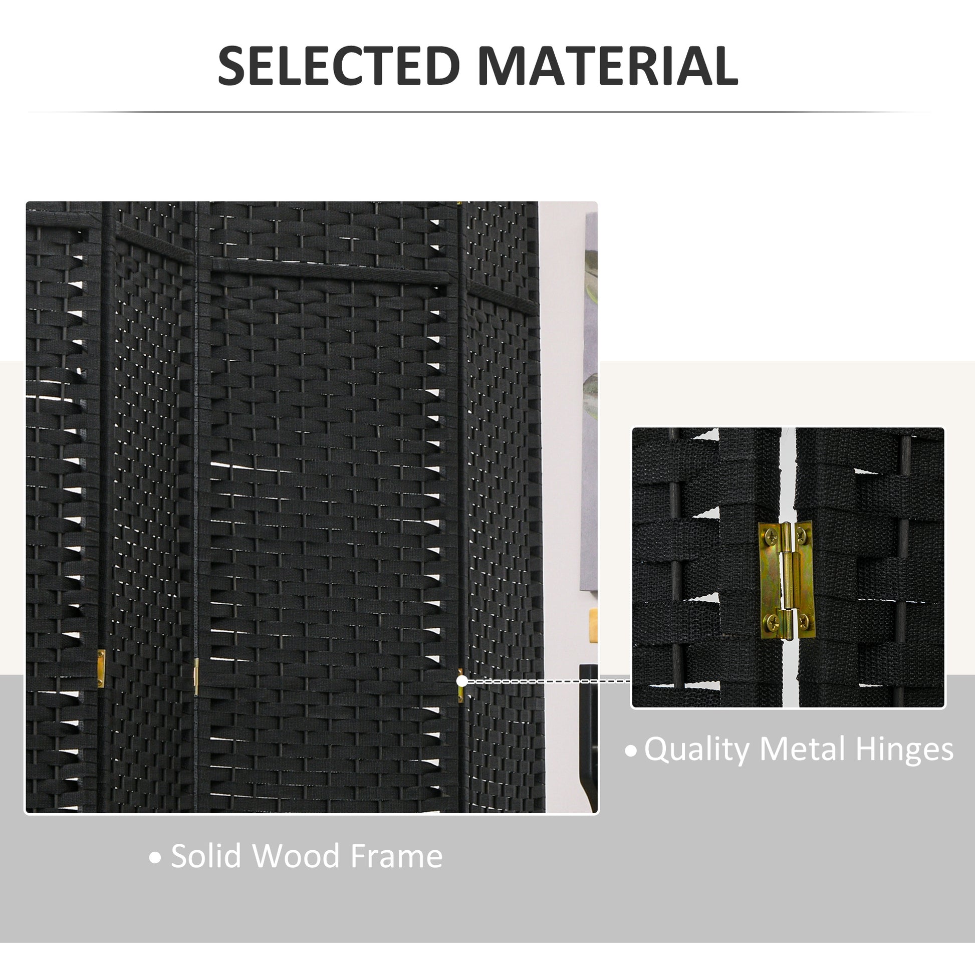 - A six-panel folding design with 15 metal hinges allows for easy storage