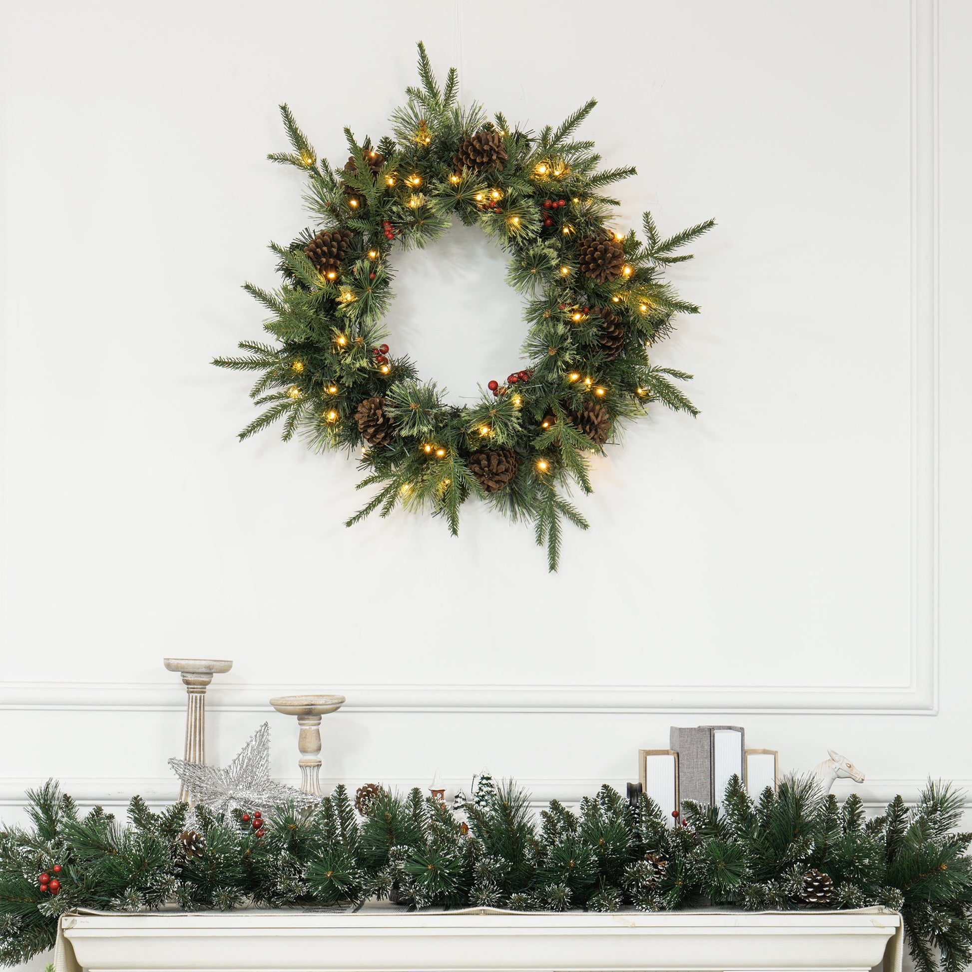 HOMCOM 60" Cone and Berry Christmas Wreath, with LED Lights