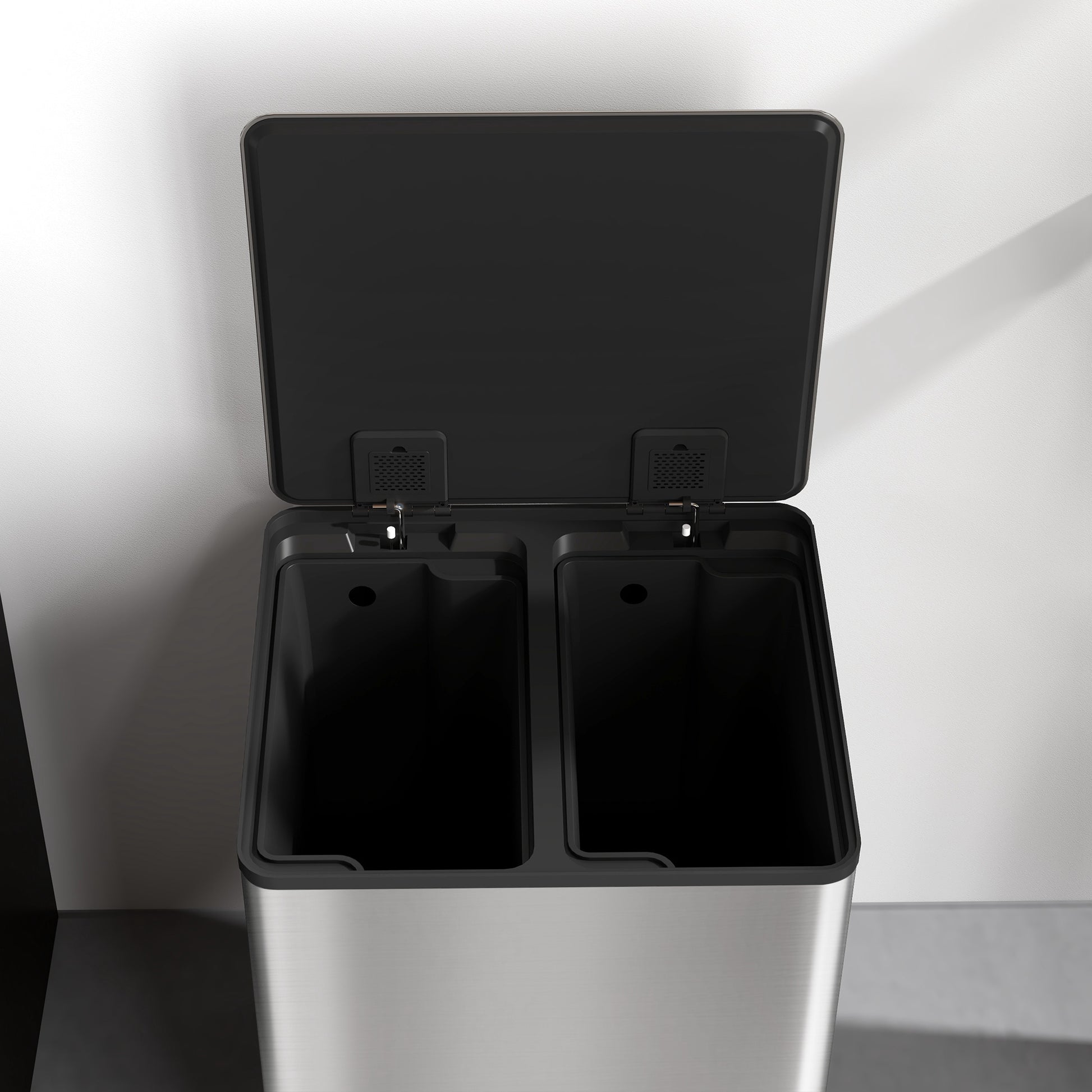HOMCOM 60L Dual Compartment Stainless Steel Bin, with Deodoriser Holders - Silver Tone