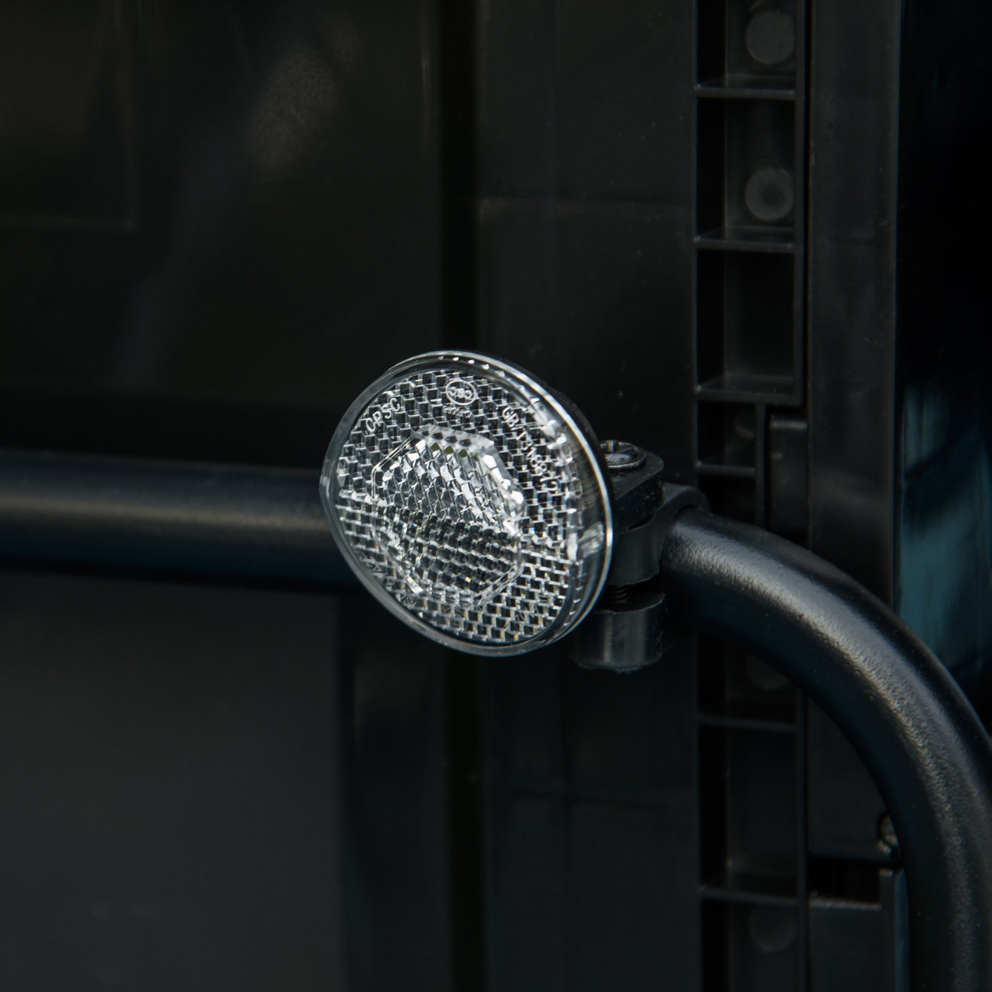 Safety with moving storage. This HOMCOM bike cargo trailer features red flag, reflectors and reflective strips on the wheels, keeping you visible whilst on-the-move. The 65L box offers storage for smaller items. A steel frame for a strong core, fitted with large wheels to move along smoothly.