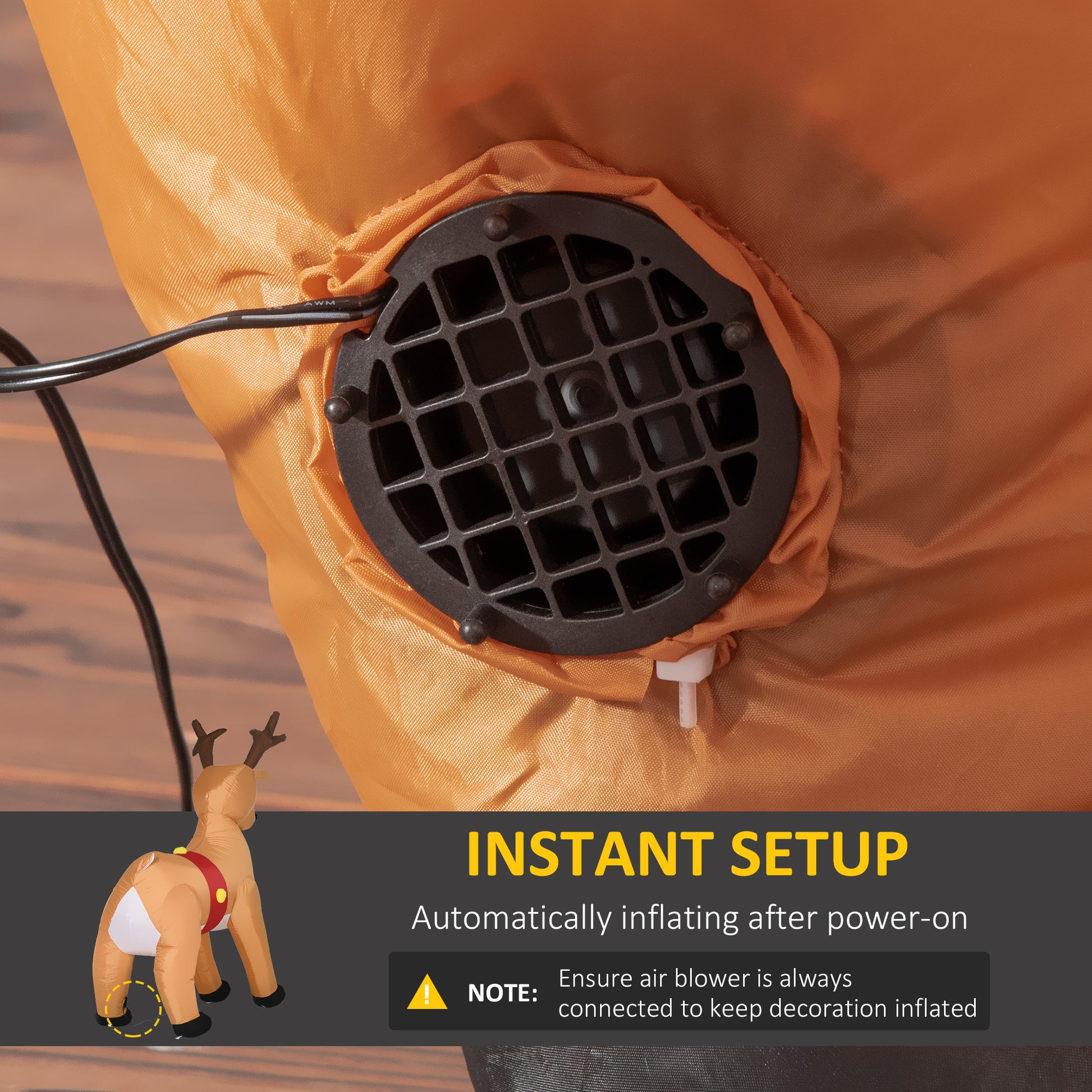 HOMCOM 6ft Christmas Inflatable Reindeer Decoration Xmas Indoor Outdoor Fun w/ Lights Accessories Holiday Blow Up Decor Animal