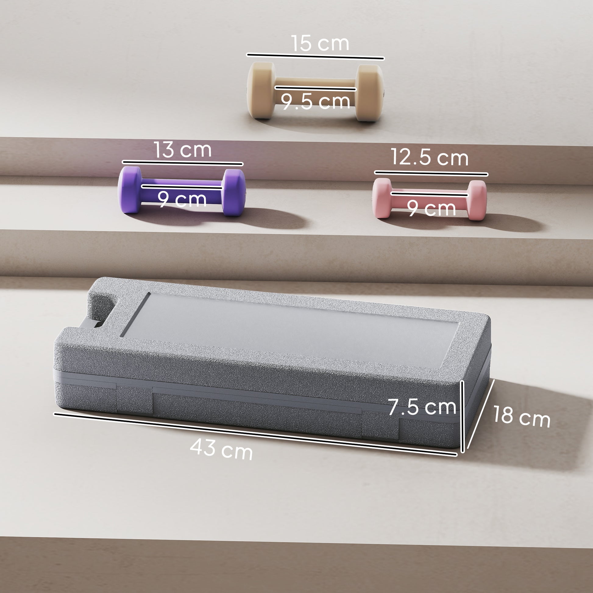 Stay active at home with our HOMCOM dumbbell set. With three pairs of dumbbells, weighing 0.5kg, 1kg and 1.5kg respectively, it's suitable for lifting, cardio, yoga, squats, get-ups and more, satisfying your different training needs. Bright colours and easy-to-read numbers, they're easy to organise for an efficient workout. Plus, it comes with a convenient suitcase for easy storage and travel. Never miss a session with this adjustable dubbells pair, maximising your fitness potential.