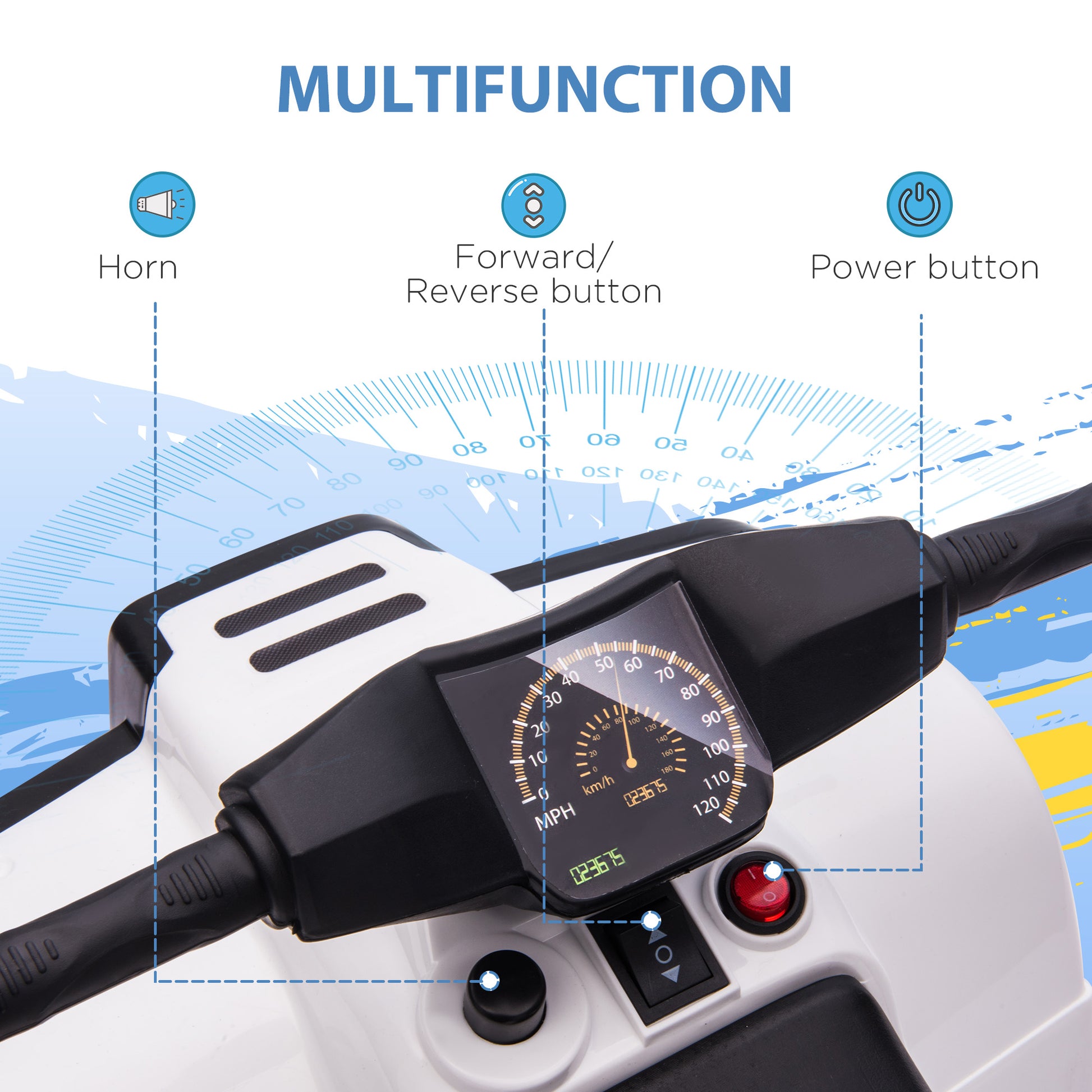 HOMCOM 6V Kids Electric Ride on Car, ATV Toy, Quad Bike with Headlights, Horn, for Toddlers 18-36 Months White