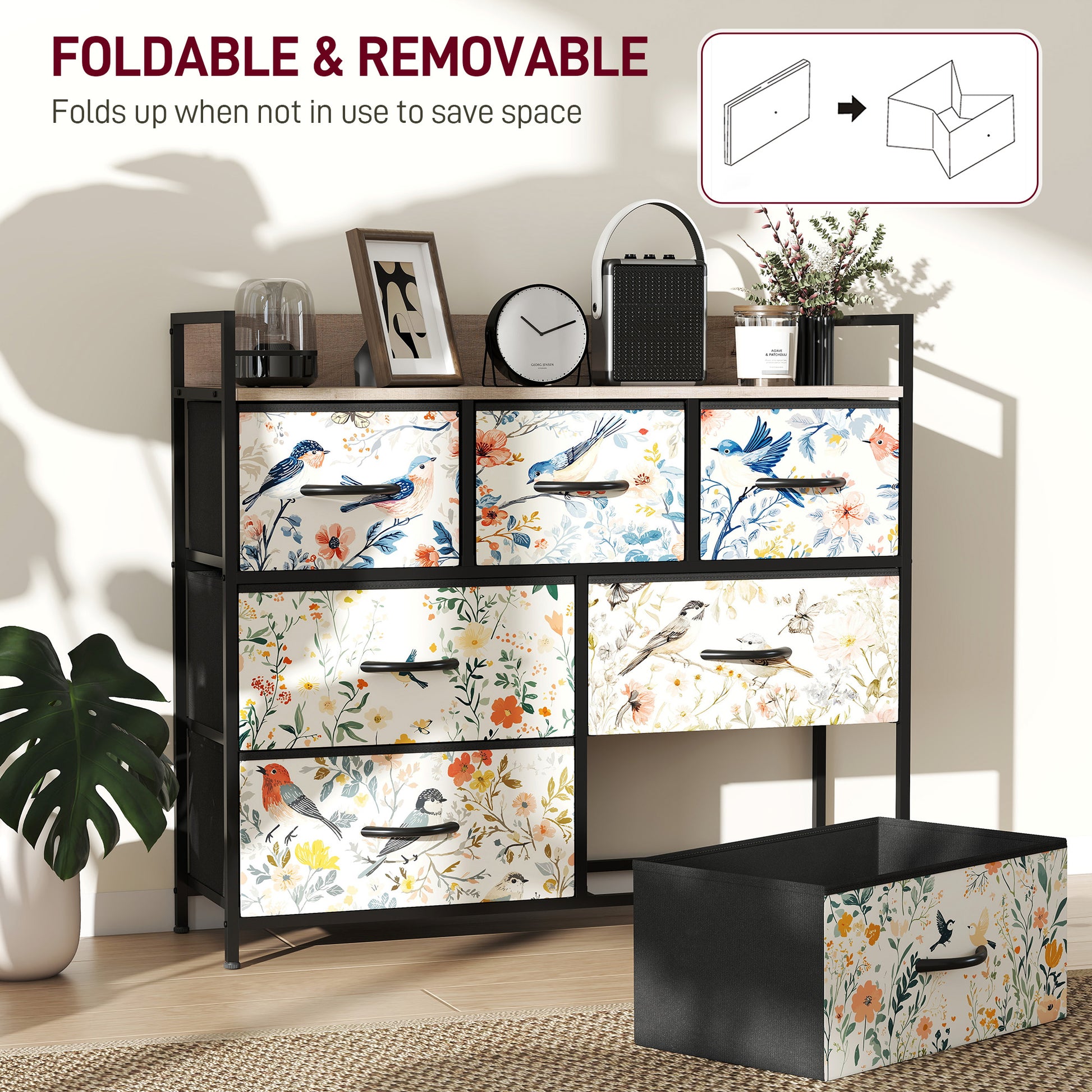 Transform your space with the HOMCOM chest of drawers, where style meets functionality! Adorned with exquisite patterns on each drawer panel, this bedroom drawers add a touch of elegance to any room. With seven fabric drawers that are both removable and foldable, organising has never been easier. Great for bedrooms, living rooms, or home offices to keep your essentials tidy.