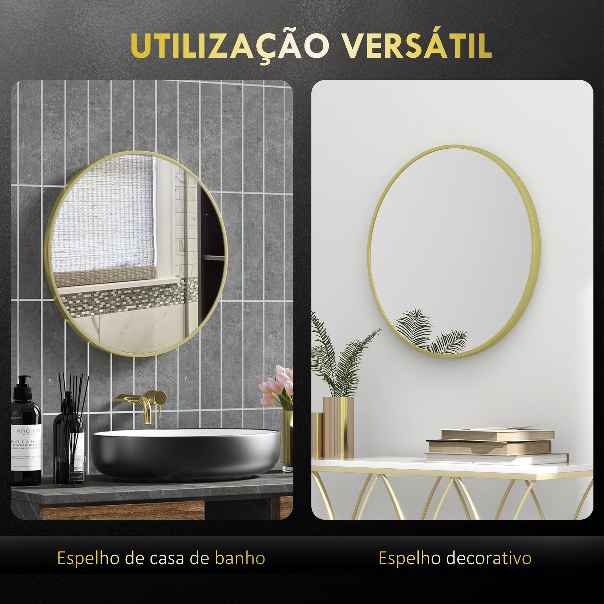 HOMCOM 70cm Aluminium Frame Round Bathroom Mirror - Gold Tone
