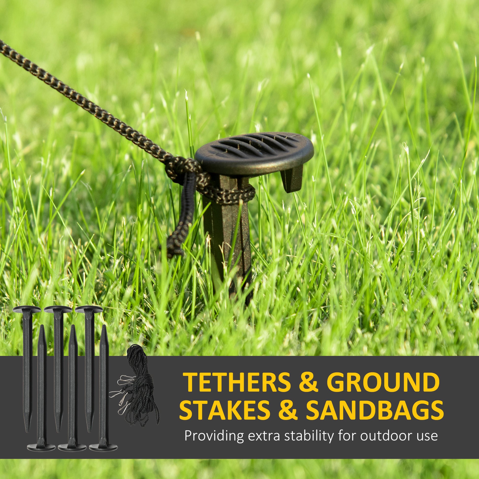 - Includes six stakes, four drawstrings and two sandbags to keep it anchored on windy nights