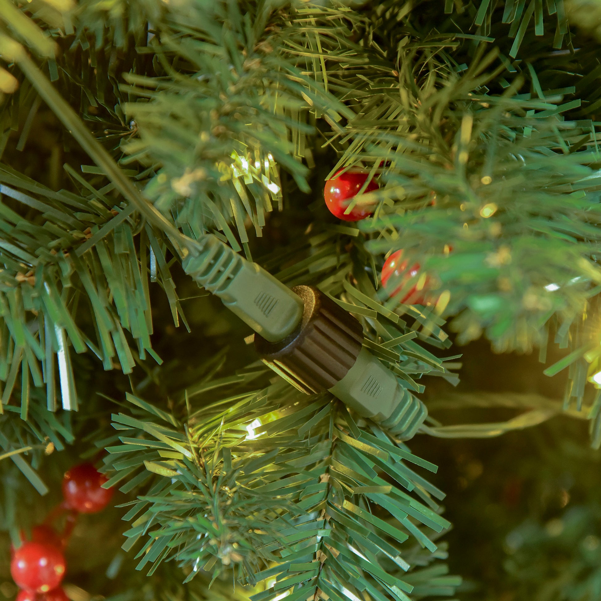 Step into the Christmas period with this artificial tree from HOMCOM. No more wrestling with tangled wires, just plug in this pre-lit piece and watch the 350 warm white LED lights twinkle - makes life so much easier for you. Perfect for popping your presents under, this decoration will bring festive cheer to your home all season long. With a removable base so it stands upright all day and night, it's complete with red berries all over for an injection of colour.
