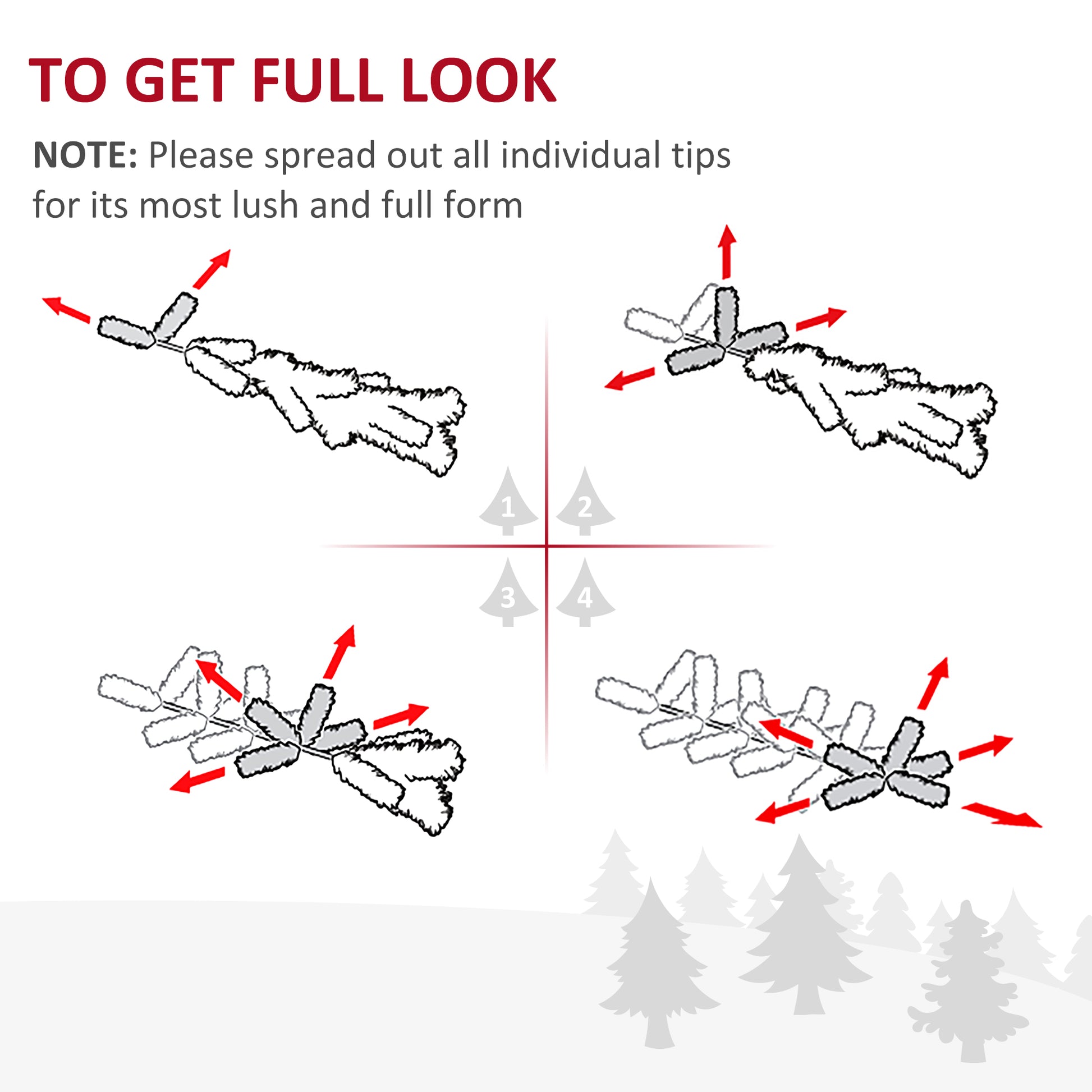 - Note: To get a full and bushy appearance, please remove and spread out all individual tips to get the best possible look from the tree