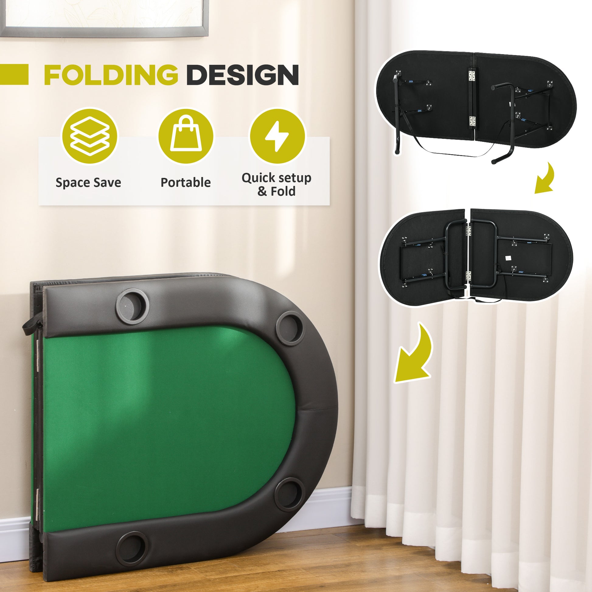 HOMCOM 8 Player Folding Poker Table, Oval Portable Blackjack Casino Table with Cup Holder, Felt Top and Metal Base, 183 x 82 x 75cm, Green and Black