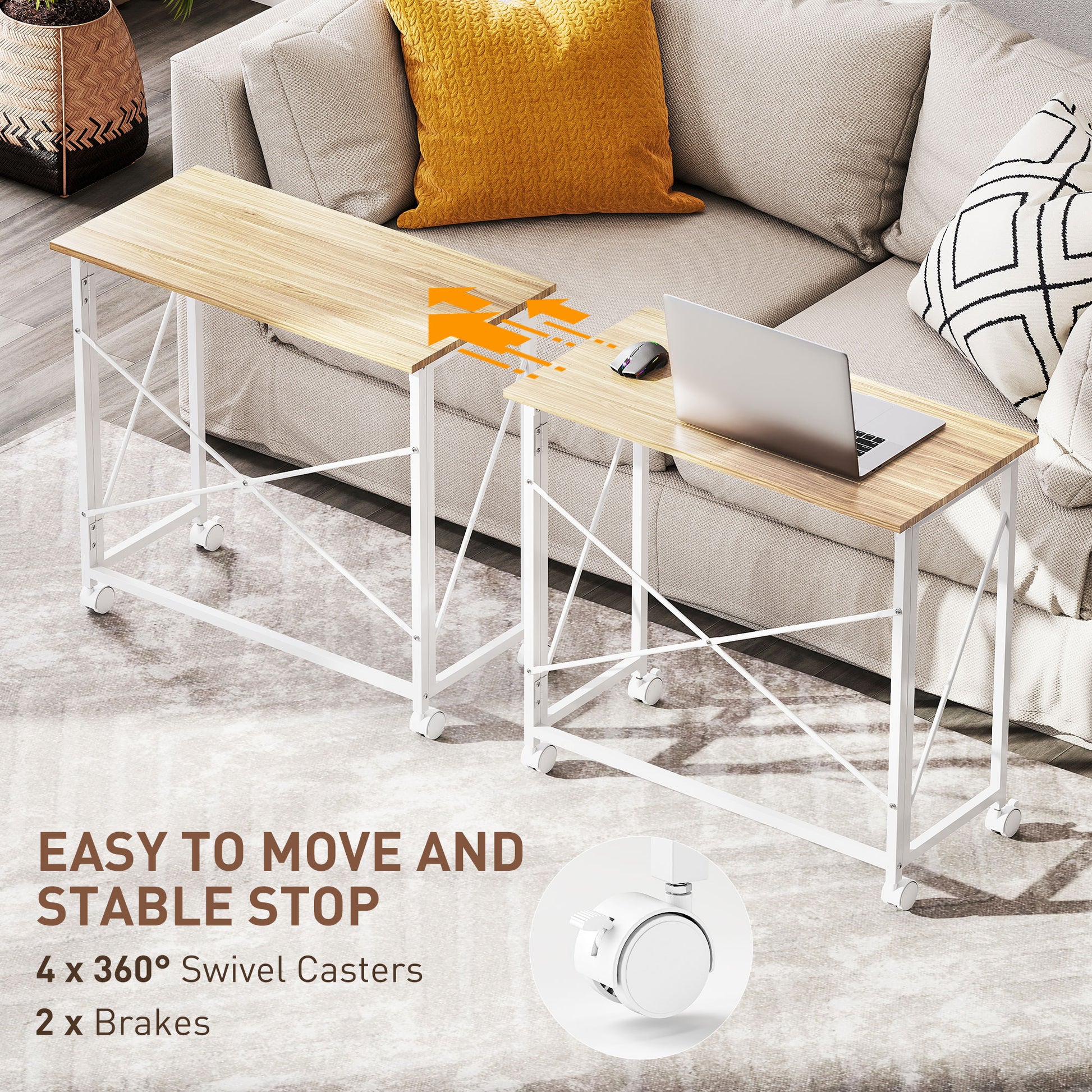 HOMCOM 80 cm Folding Desk on Wheels - Natural Tone