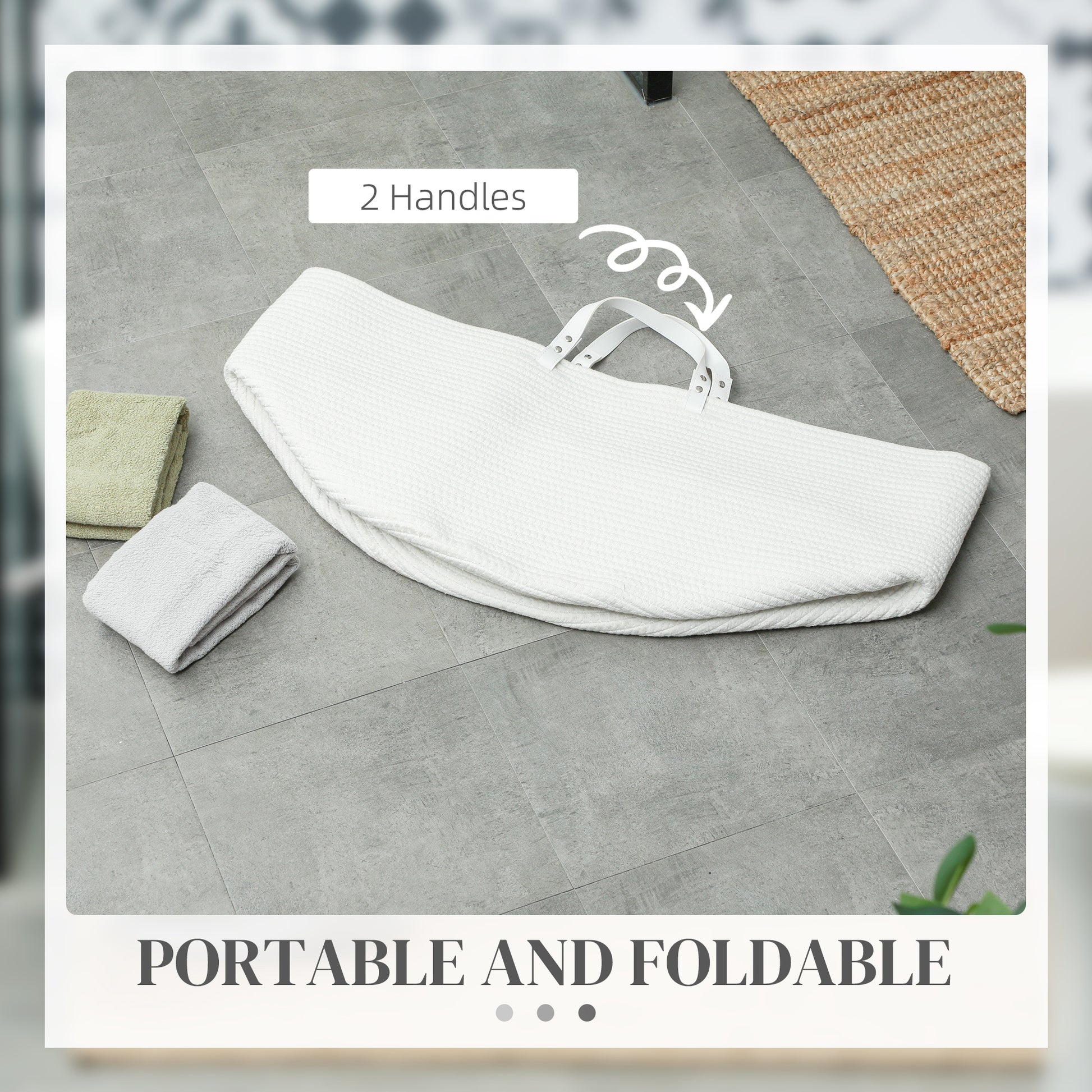 HOMCOM 88L Cotton Rope Laundry Basket, with Handles - Cream White