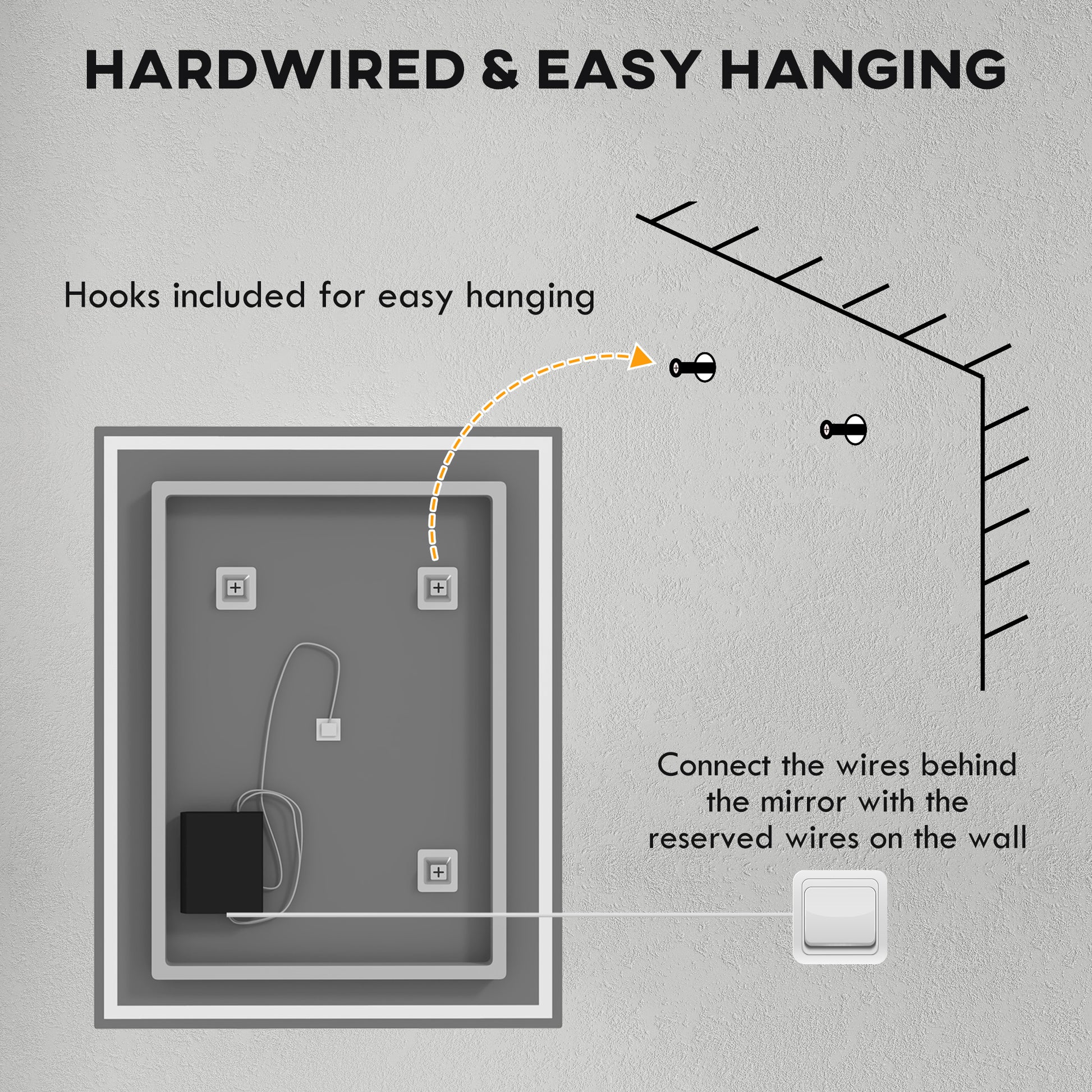 - IP44 rated: LED bathroom mirror is suitable in moisture environments