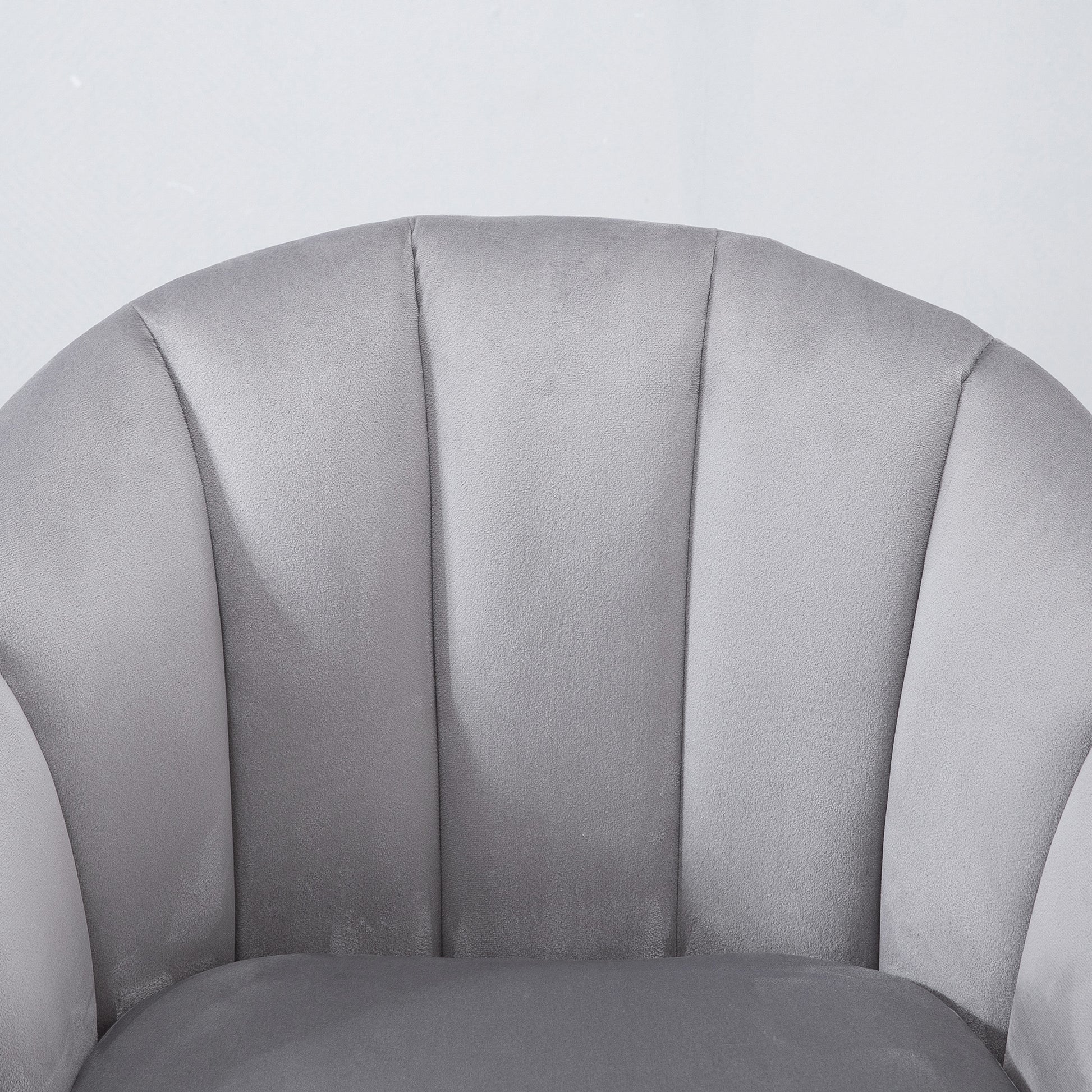 HOMCOM Accent Chair Velvet Fabric Single Sofa Armchair Home Living Room Solid Wood Leg Upholstered Side Armchair Grey