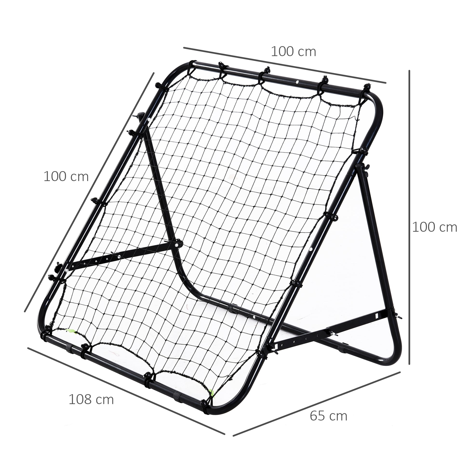 Whether you're a beginner or professional, this Football rebounder net from HOMCOM is great for sharpening up your skills, building strength and improving confidence. Made using steel, the frame has been built to last for years of practise, supporting the weather-resistant net via 20 elastic cords that aid in handling the impact when the ball hits. Adjustable at the back to reflect the ball back at various angles for developing your skills and making you more confident playing matches.