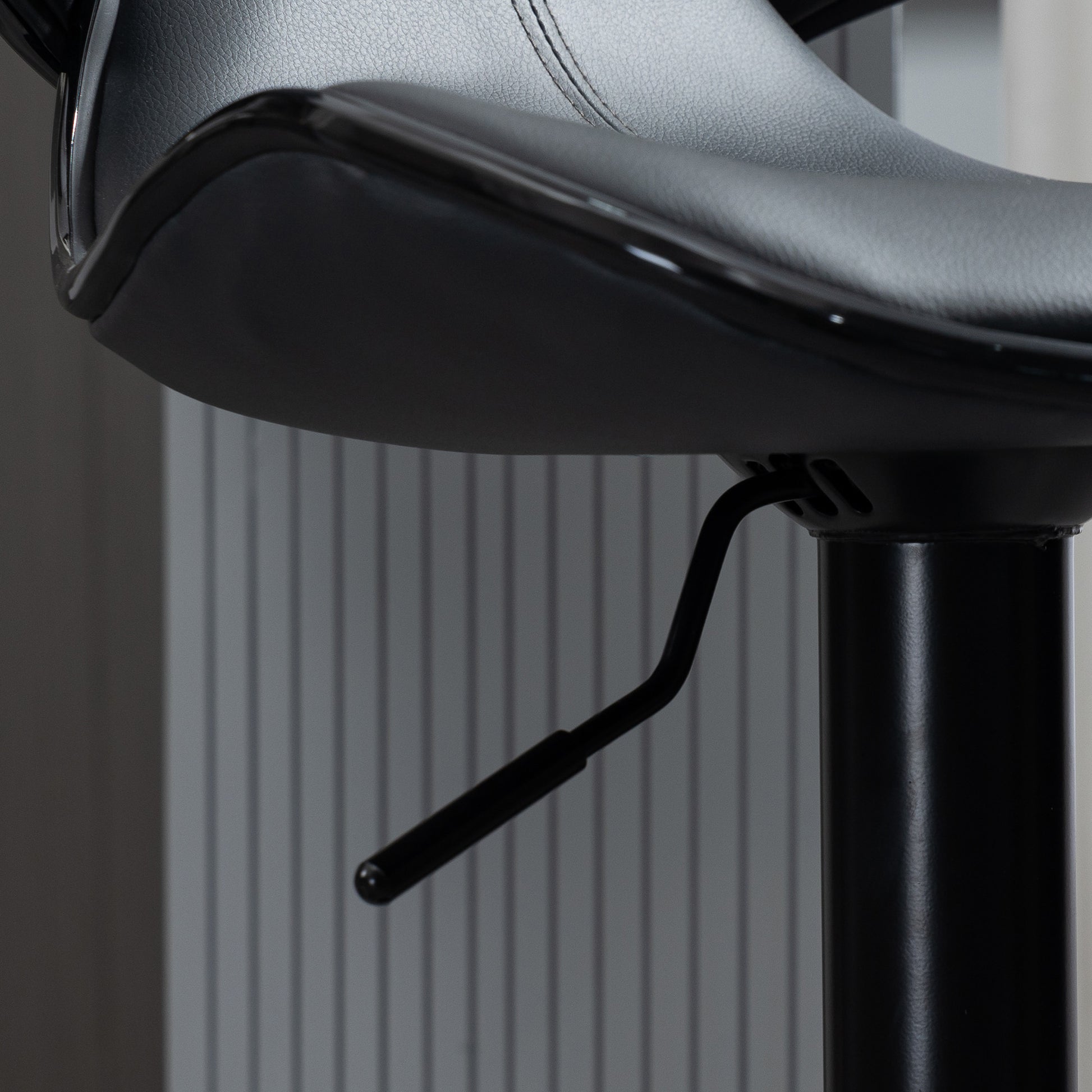 Curved countertop seating, done the sleep way with these two HOMCOM bar stools. The faux leather seats are super sleek, the padded filling comfortable - the best of both worlds. Each seat is winged, formed into a curved shape for a unique look. Each seat is fitted on a steel base for full support; the height adjustable between 89.5cm-109.5cm to match to different countertop and dining tables. Complete with a handy foot rest. Comes in a set of two.