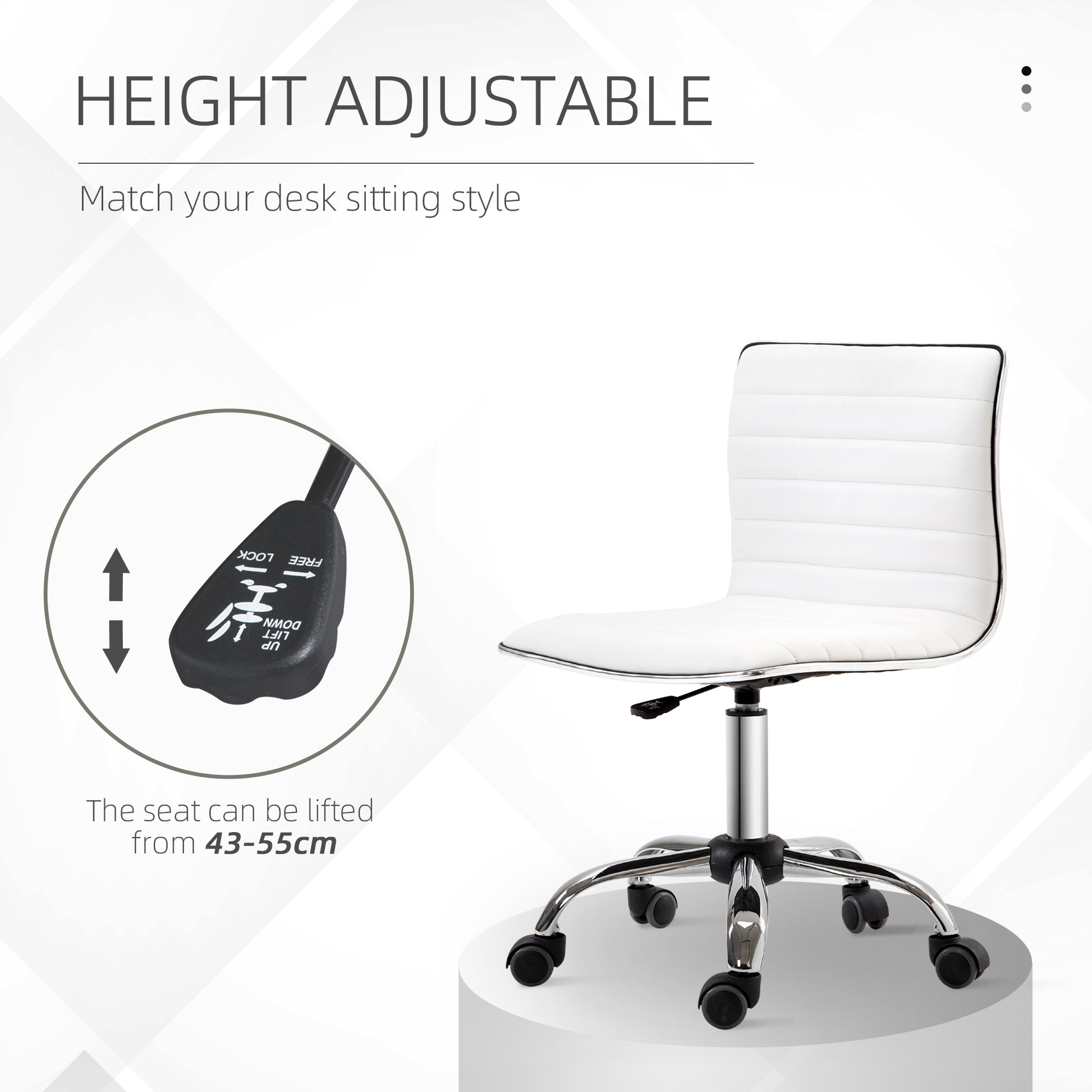 HOMCOM Adjustable Swivel Office Chair with Armless Mid-Back in PU Leather and Chrome Base - White