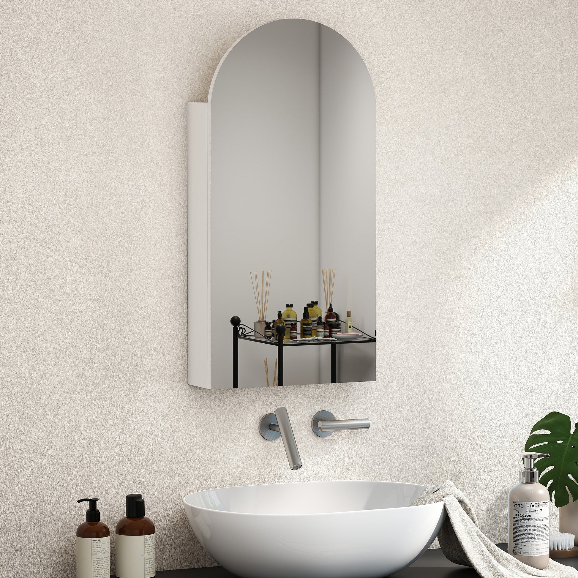 Transform your daily routine with the HOMCOM bathroom mirror cabinet. Struggling with cluttered counters? Its elegant arch-shaped, frameless design adds modern sophistication while three adjustable glass shelves offer tailored storage for toiletries and cosmetics. Great for compact spaces, this bathroom wall cabinet maximizes vertical setting. Elevate your bathroom's style and functionality effortlessly with this space-saving solution.