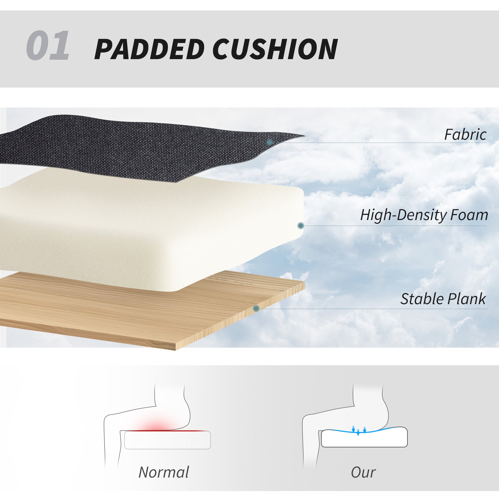 - High-density foam padding ensures long-lasting comfort