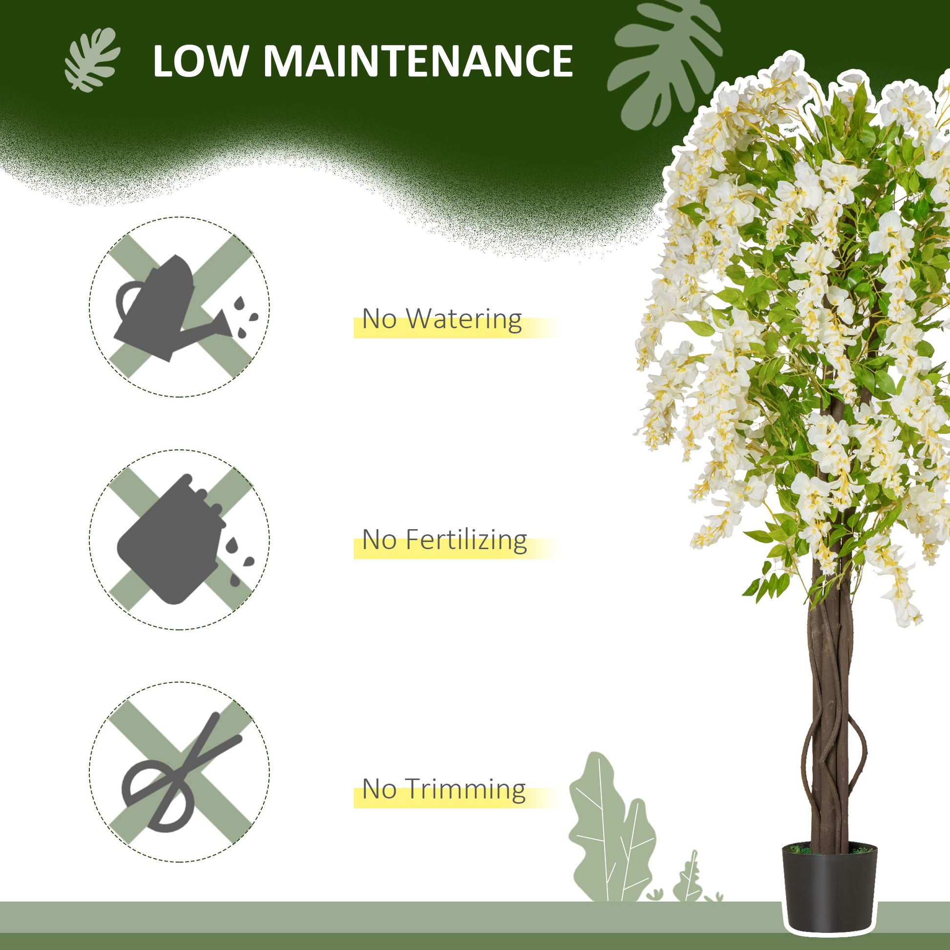 HOMCOM Artificial Realistic White Wisteria Tree Faux Decorative Plant in Nursery Pot for Indoor Décor, 160cm