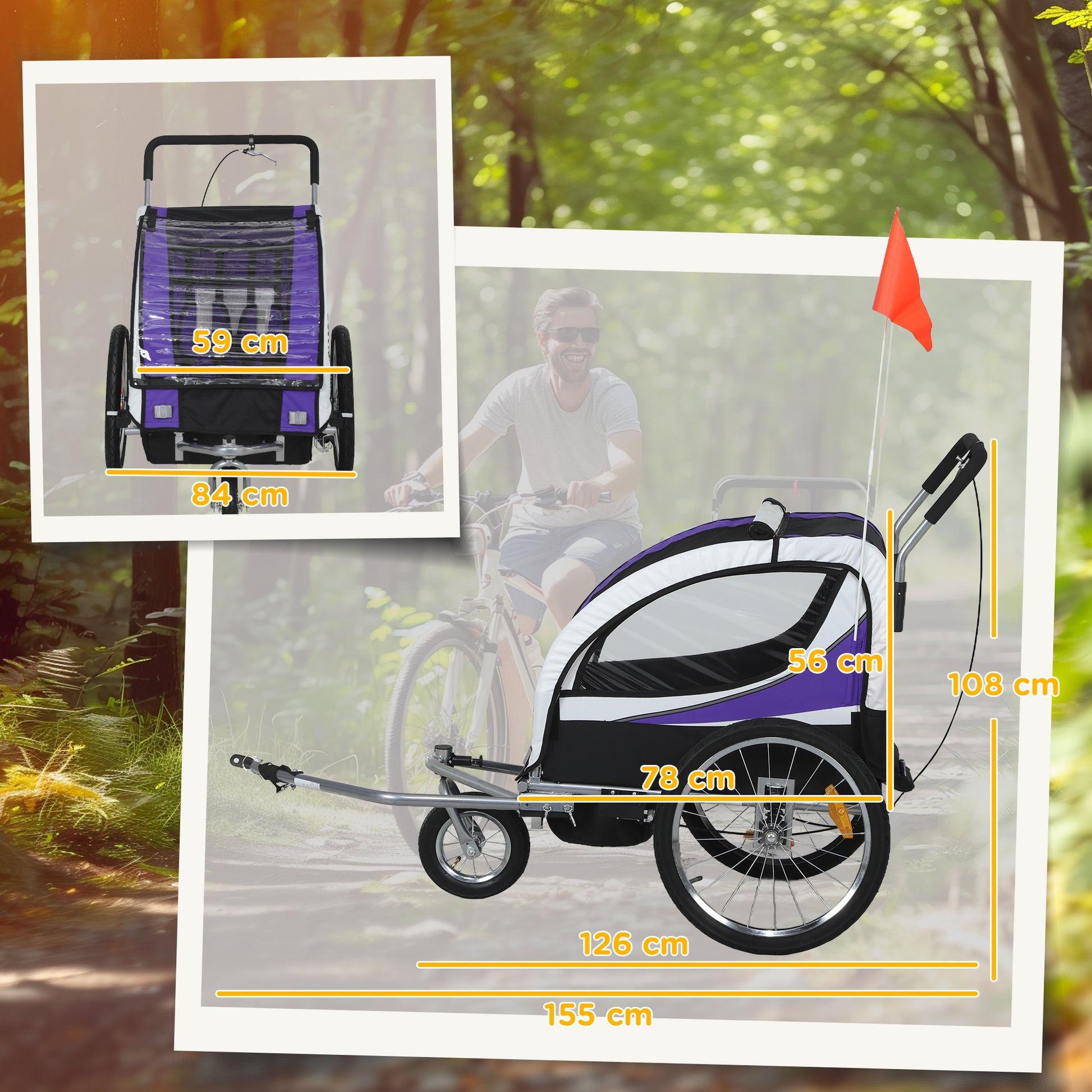 HOMCOM Baby Bike Trailer with 5 Point Harness, Steel Frame, Reflectors, Safety Flag, Hitch Coupler, Purple