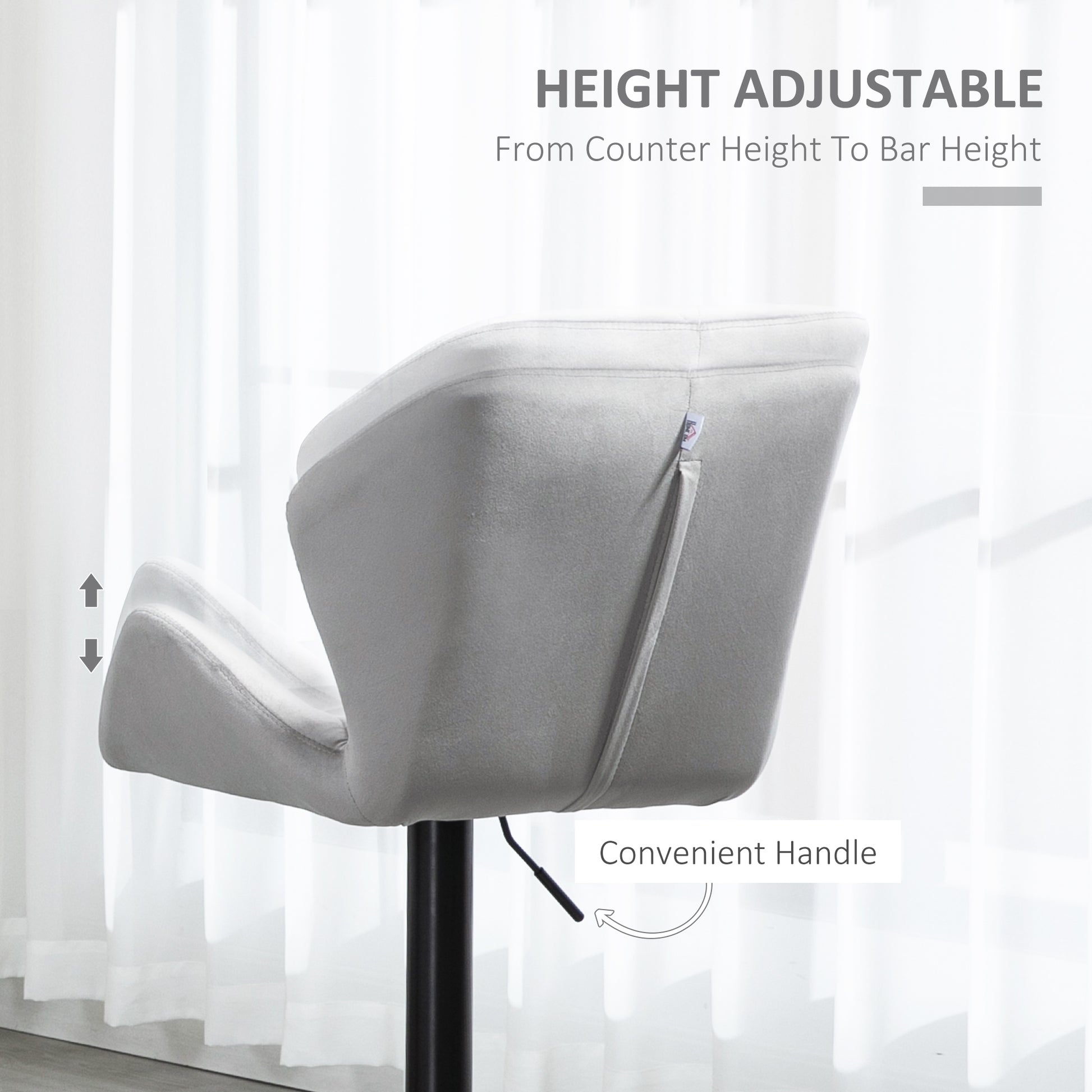 HOMCOM Bar Stools Set Of 2, Luxurious Velvet-Touch Barstools with Metal Frame Footrest Round Base Triangle Indenting Moulded Seat Adjustable Height Swivel Grey