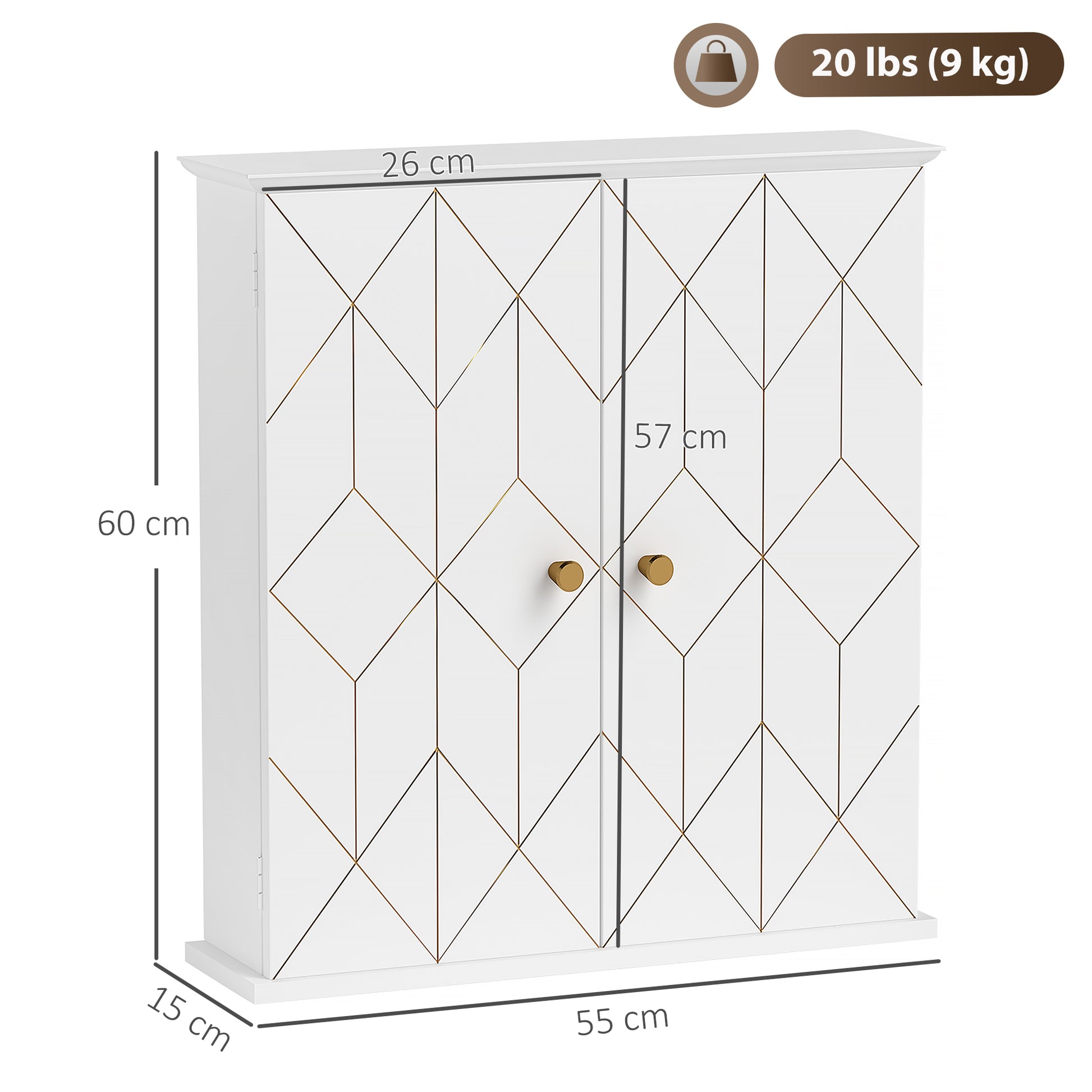 HOMCOM Bathroom Cabinet Wall Mounted, Bathroom Wall Cabinet Medicine Cabinet with 2 Doors, Adjustable Shelf, White