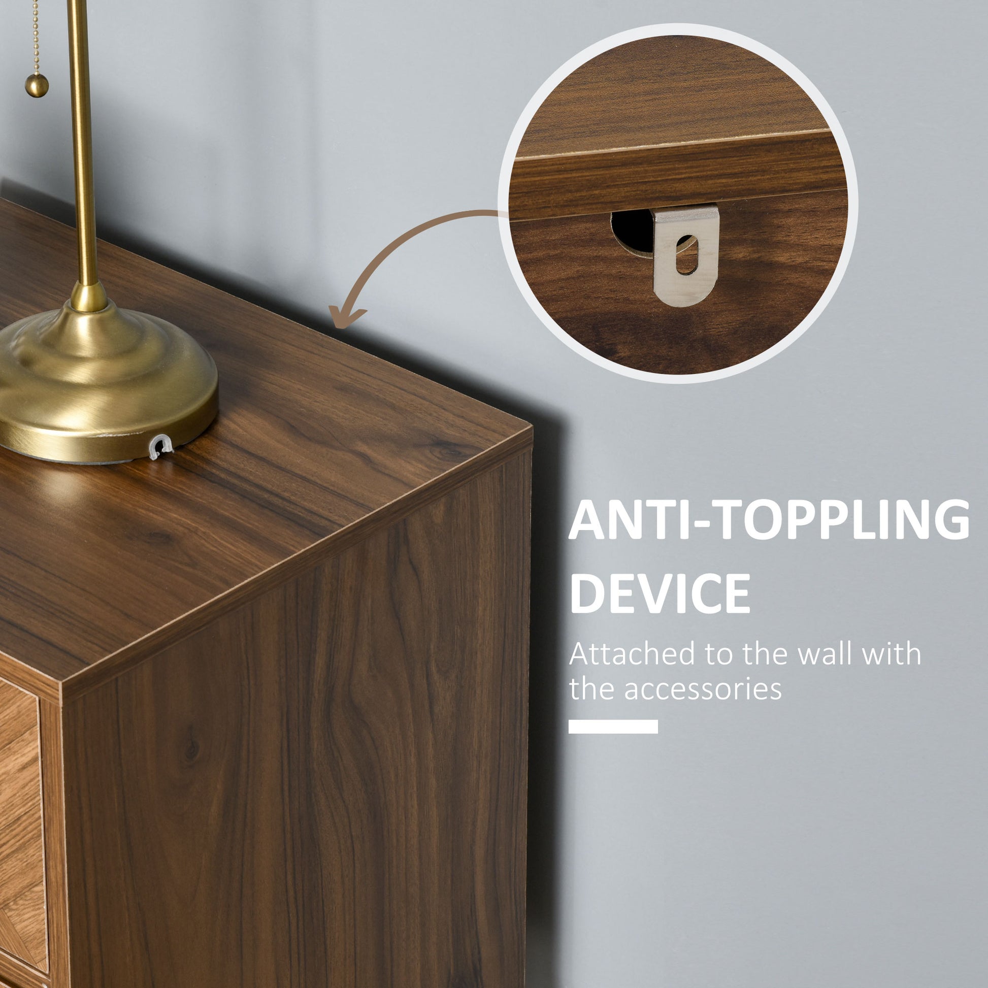 - Anti-tipping straps to safely attach to a wall